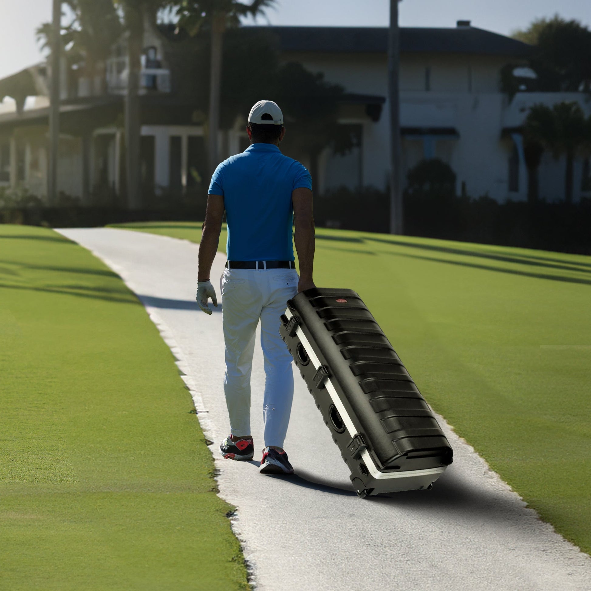 Constructed from ultra-high molecular weight polyethylene hard plastic, this case provides top-notch protection for your golf bags and clubs. Its contoured design accommodates cart bags, carry bags, and drivers up to 49 inches in length, fulfilling all your golf bag needs. The case's patented industrial-strength latches guarantee the safety of your clubs, even during air travel.