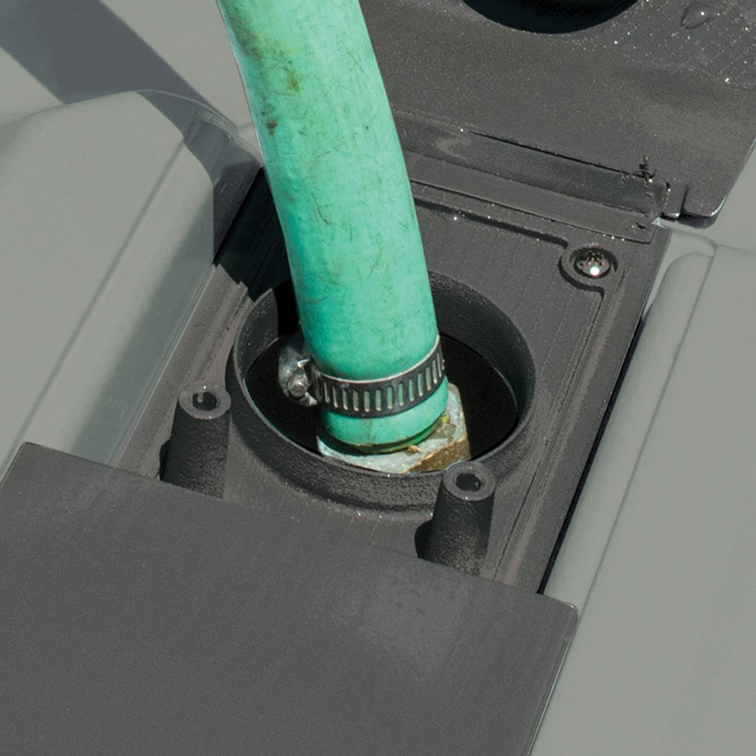 - PermaStore storage compartment protects the pre-attached hose and stores sewer fittings