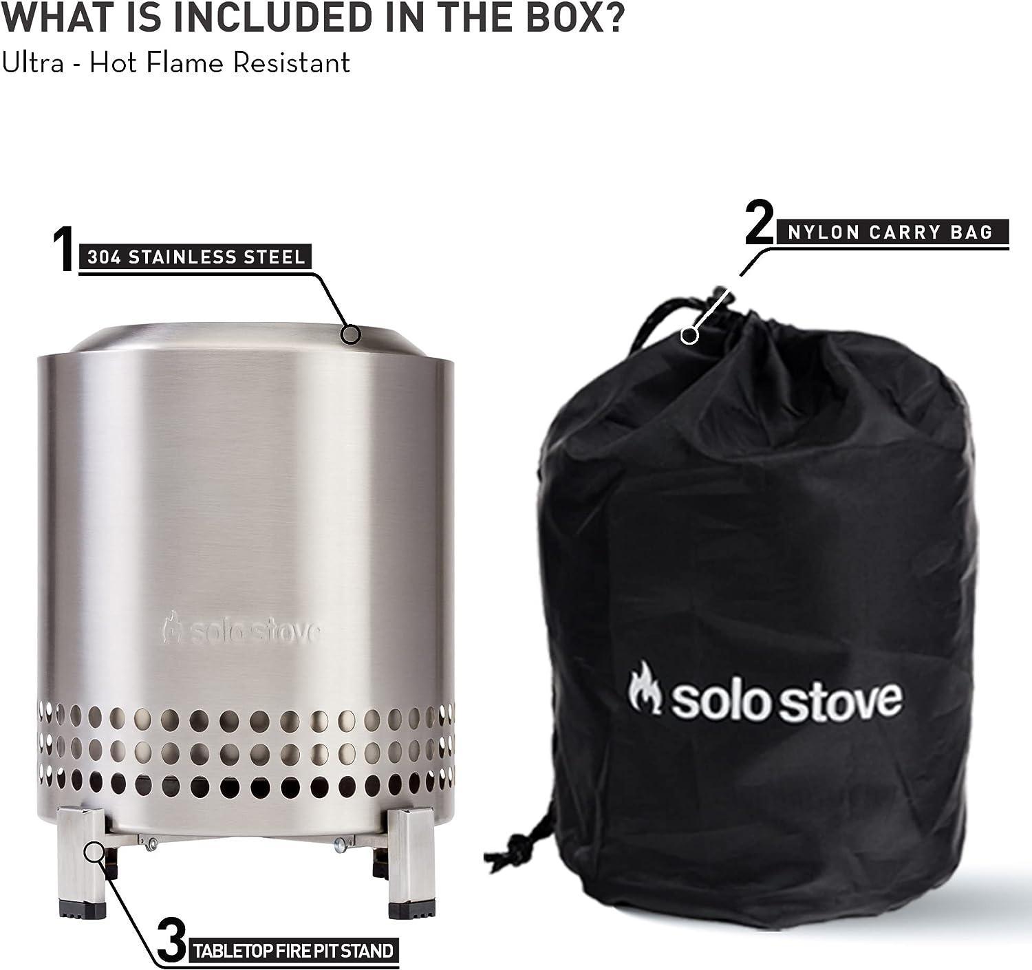 - LONG-LASTING AND PORTABLE: Just like Solo Stove’s Best Selling Fire Pits, The Mesa is made from highly durable 304 stainless steel, surprisingly lightweight, and won’t cave under the pressure of an ultra-hot roasting flame. Count on the Solo Stove Mesa Tabletop Fire Pit to help you create good moments that lead to lasting memories. Dimensions (HxW) – 8.6" x 7", 2.3 lbs.