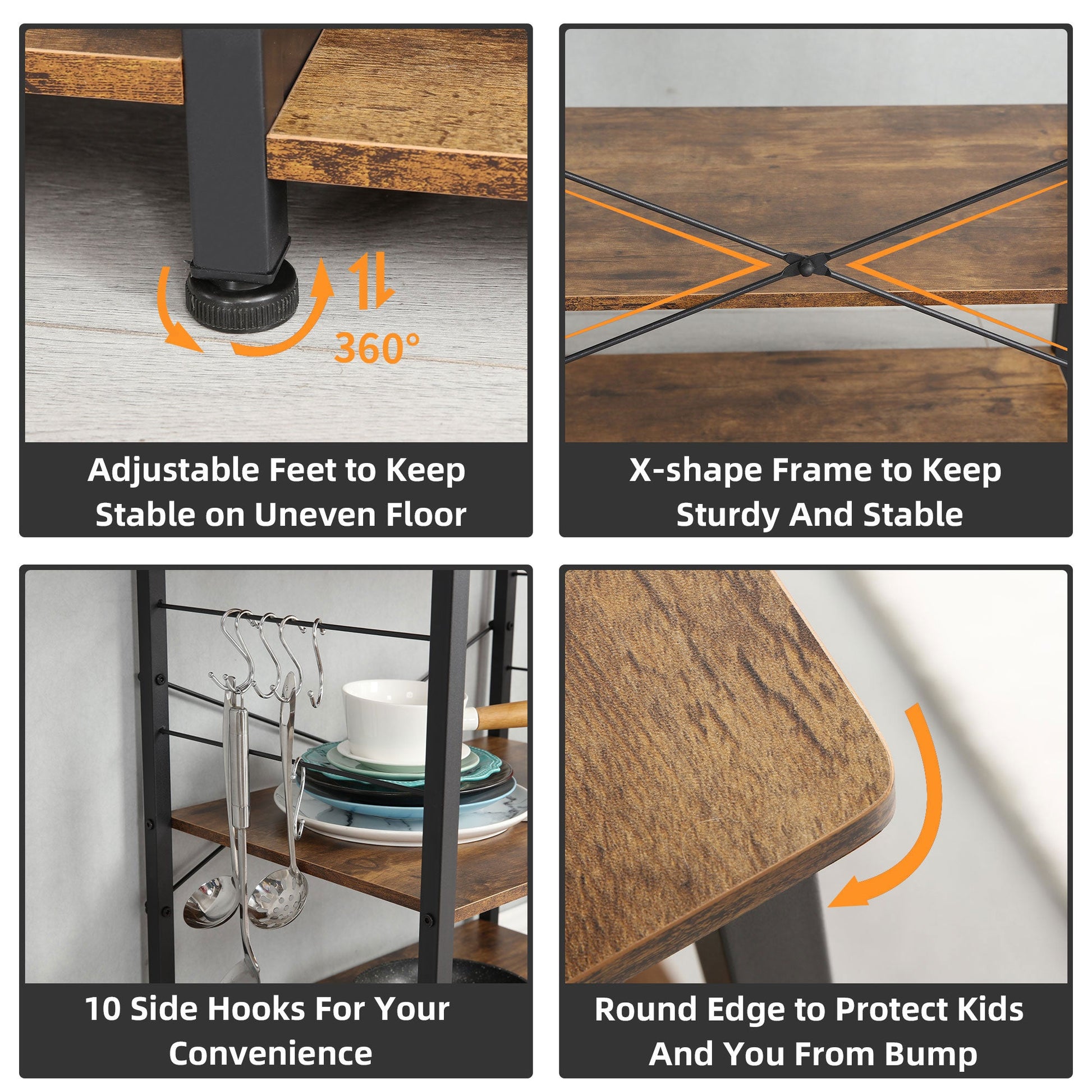 - 2nd and 3rd tiers offer enough open space to store toasters, spices, dishes, and other miscellaneous kitchen appliances