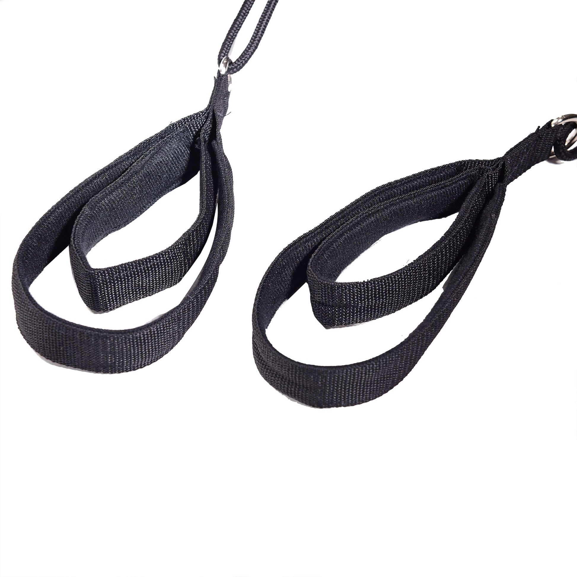 - Adjustable resistance and height options using 4 heavy-duty elastic bungee cords (1 red, 1 yellow, and 2 black cords)