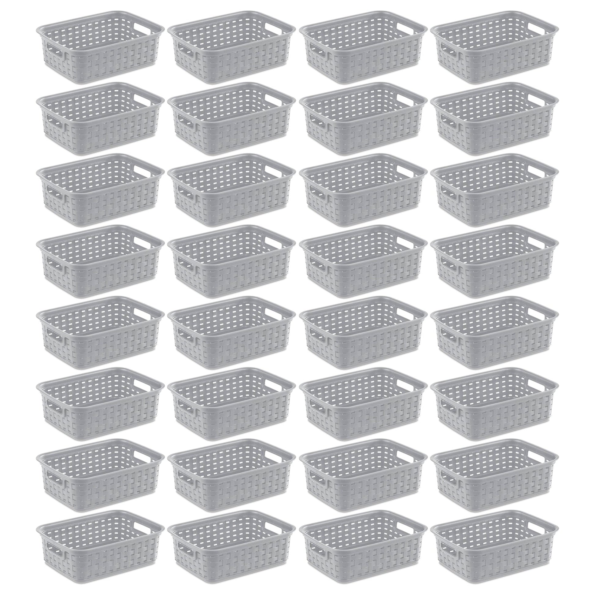 Sterilite 11" Small Weave Open Bin Organize Wicker Storage Basket, Grey, 32 Pack