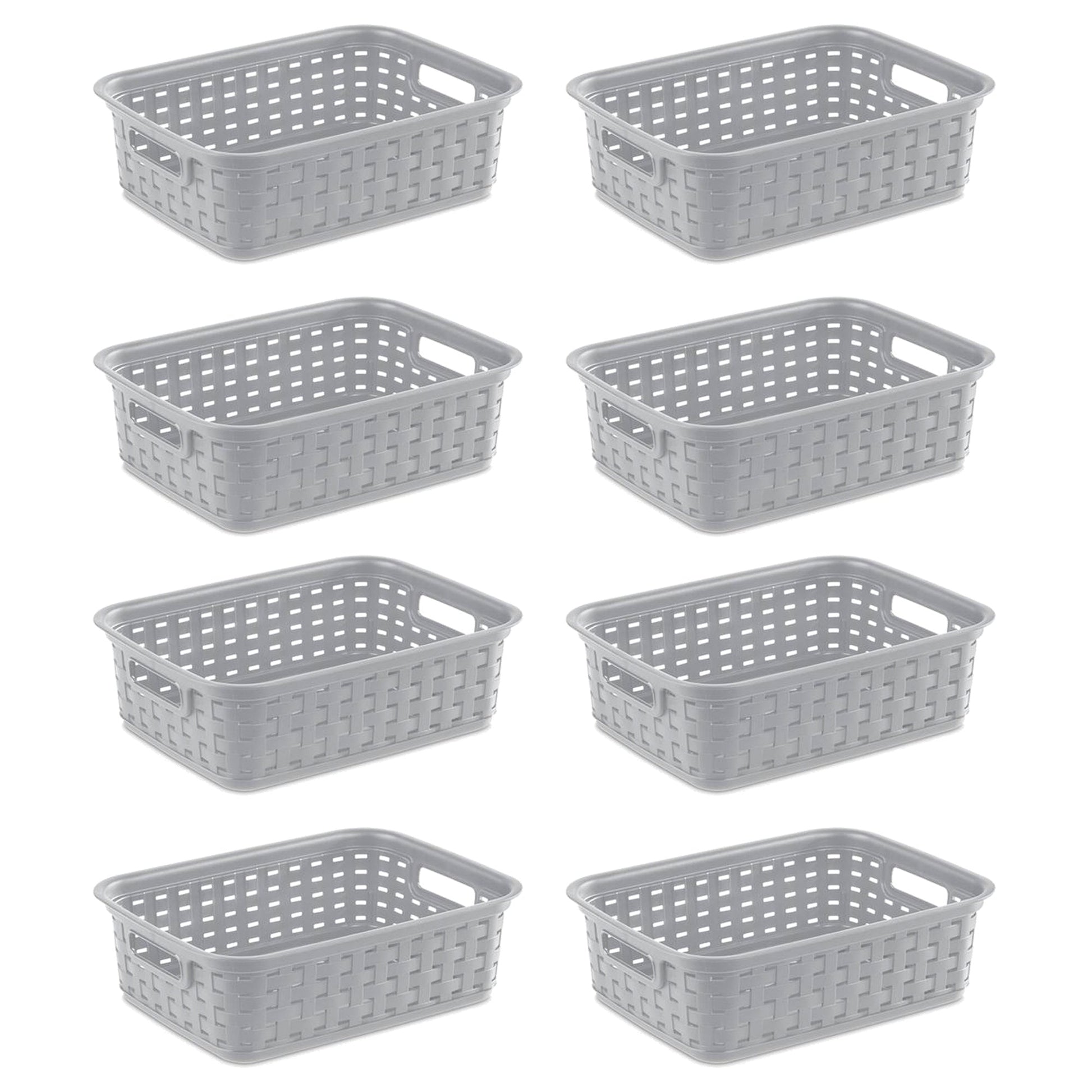 Sterilite 11" Small Weave Open Bin Organize Wicker Storage Basket, Grey, 8 Pack