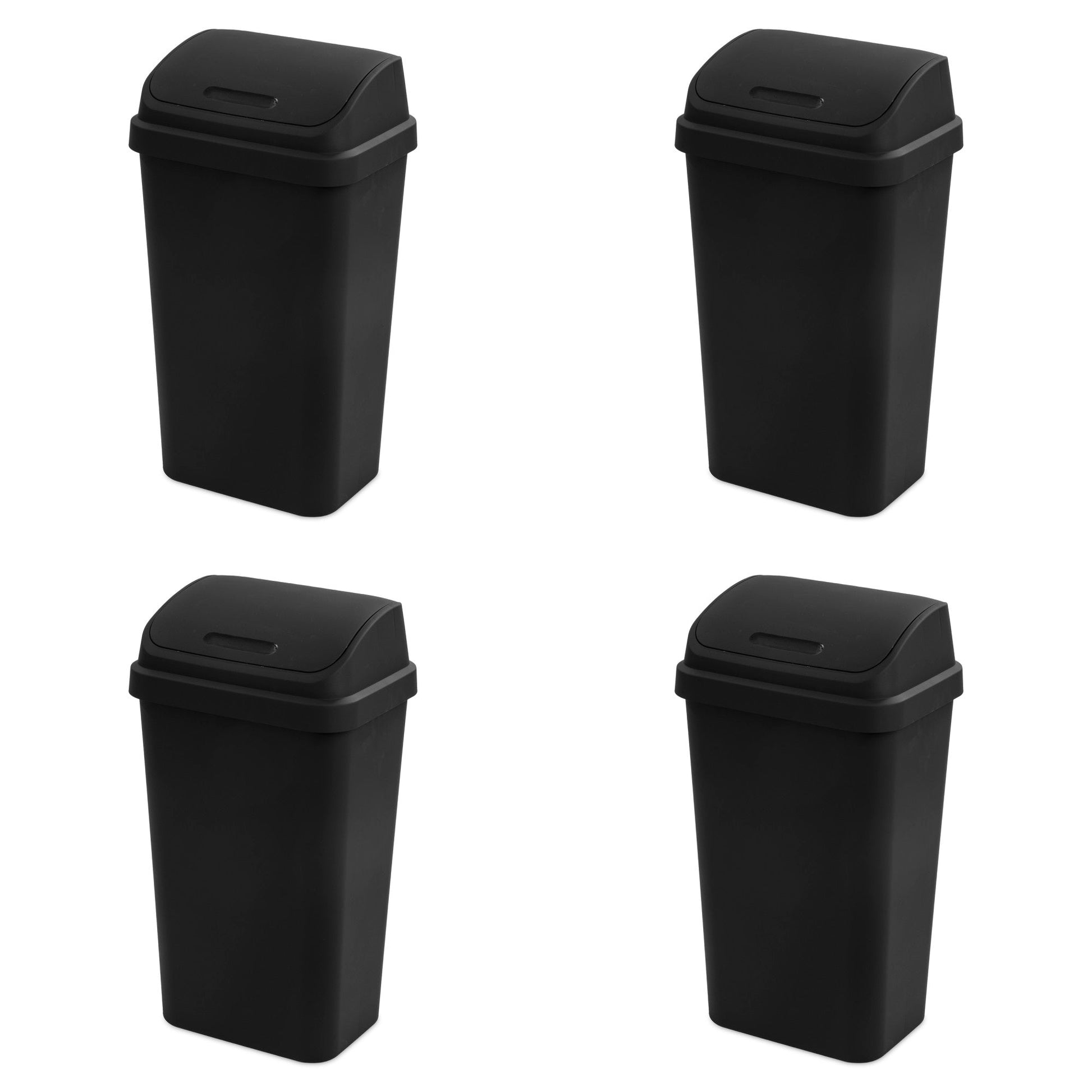 Sterilite 13 Gallon Swing Top Lidded Wastebasket Kitchen Trash Can, Black 4 Pack