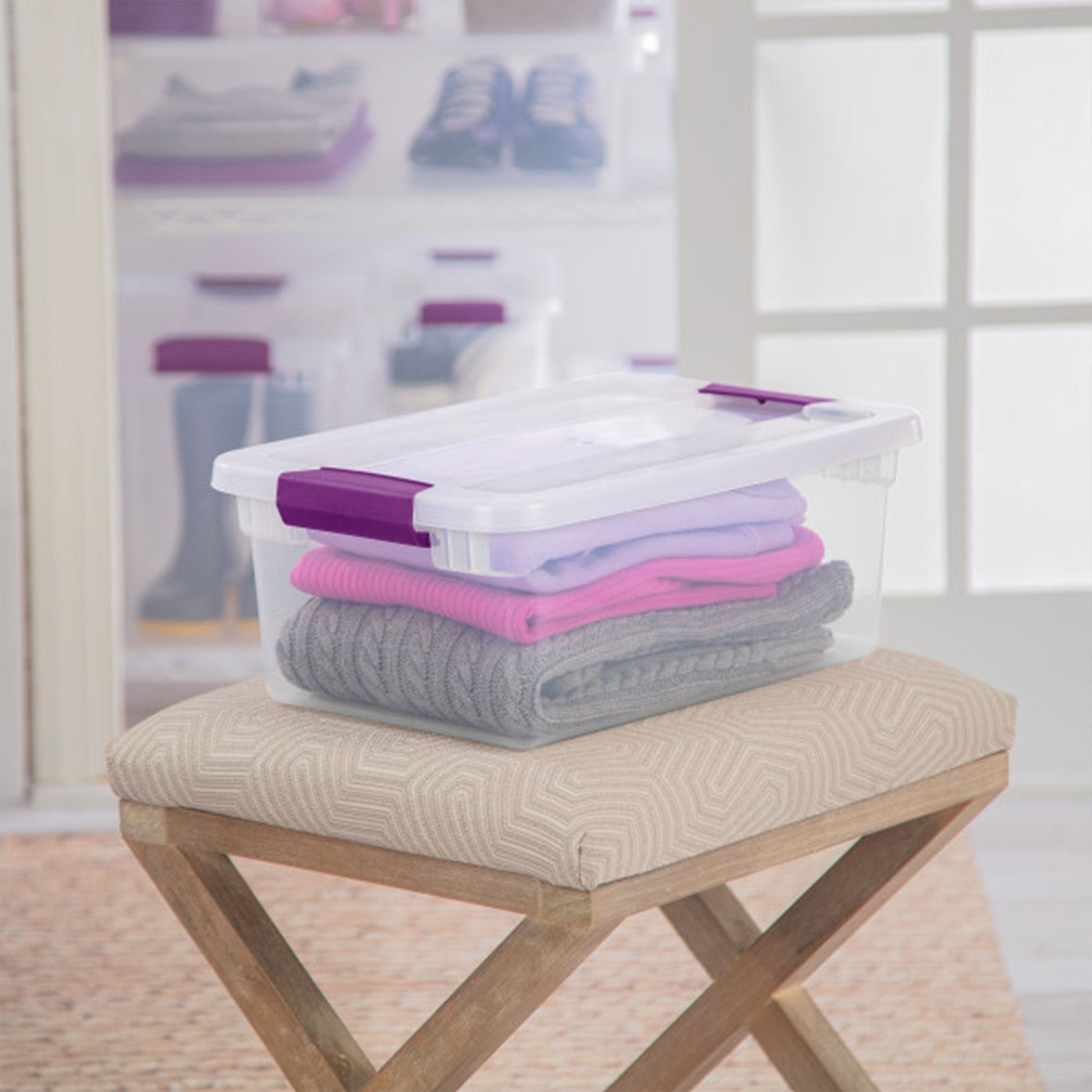 Multi-use and ideal for storing blankets and other bulky items around the home, these storage totes feature ergonomic latches that attach the lid securely to the base, yet are still easy to unlatch. With a see-through base and lid, they allow contents to be easily identified from any angle. Indexed lid allows multiple bases to stack on top of each other securely for efficient storage. Their contemporary styling with ergonomic, color-coordinated latches adds visual appeal to everyday assortment. Durable and built for long-term storage, you can rest assured that your items will remain safe from dust, dirt, or debris, even when stored in uninsulated spaces such as unfinished basements, garages, or exterior storage rooms.