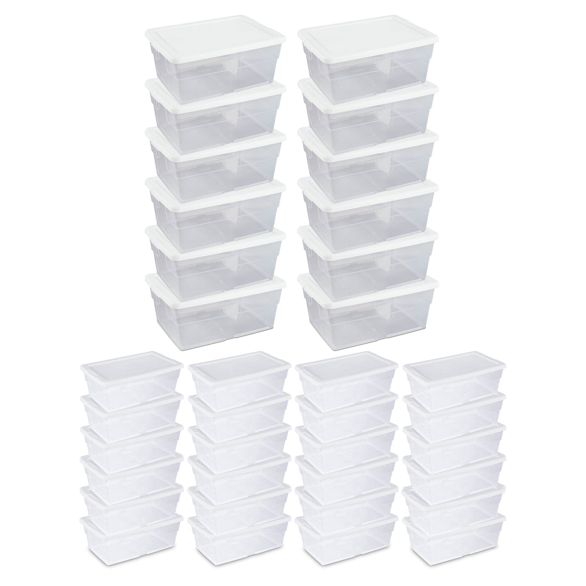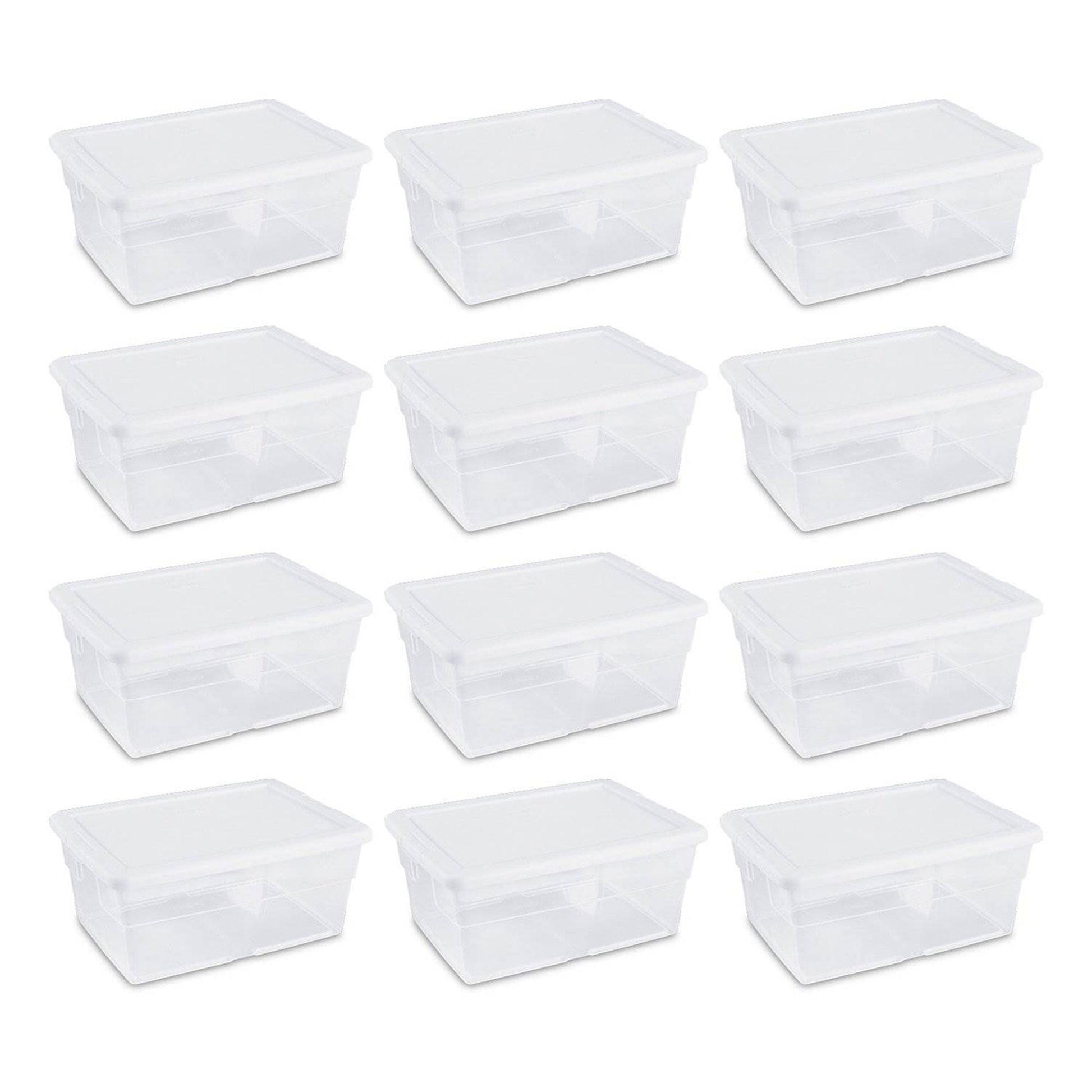 Clear through all the clutter and bring some organization and sanity back to your closet with this multi-pack of (12) 16-Quart and (24) 6-Quart Plastic Storage Totes from Sterilite.
