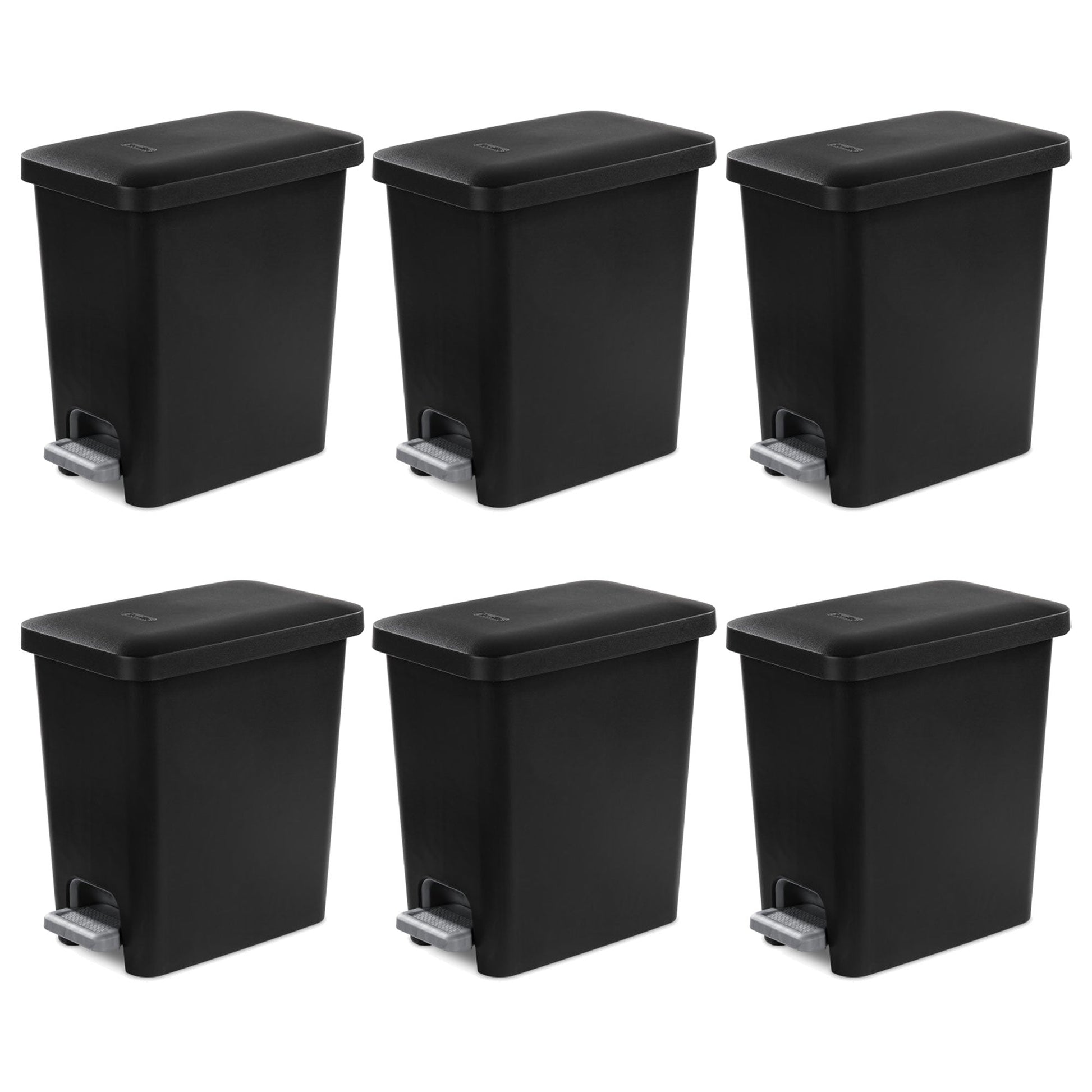 Sterilite 2.7 Gallon Rectangular Step On Trash Bin Wastebasket, Black (6 Pack)