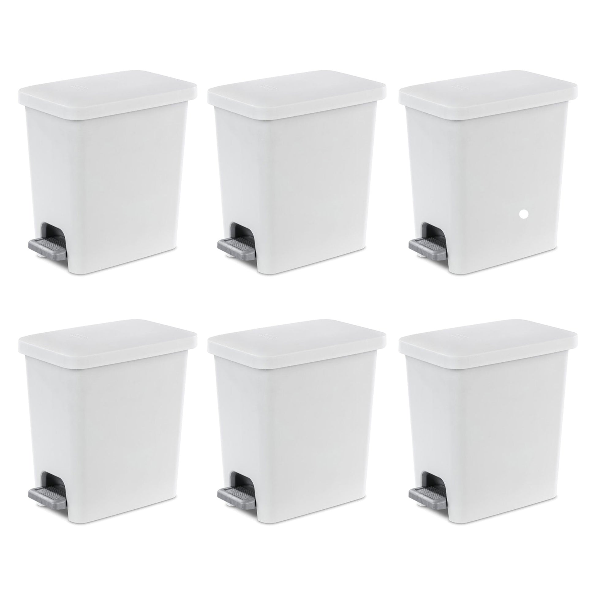 Keep refuse securely out of sight with these 6 Sterilite 2.7-Gallon Rectangular Step-On Wastebaskets.