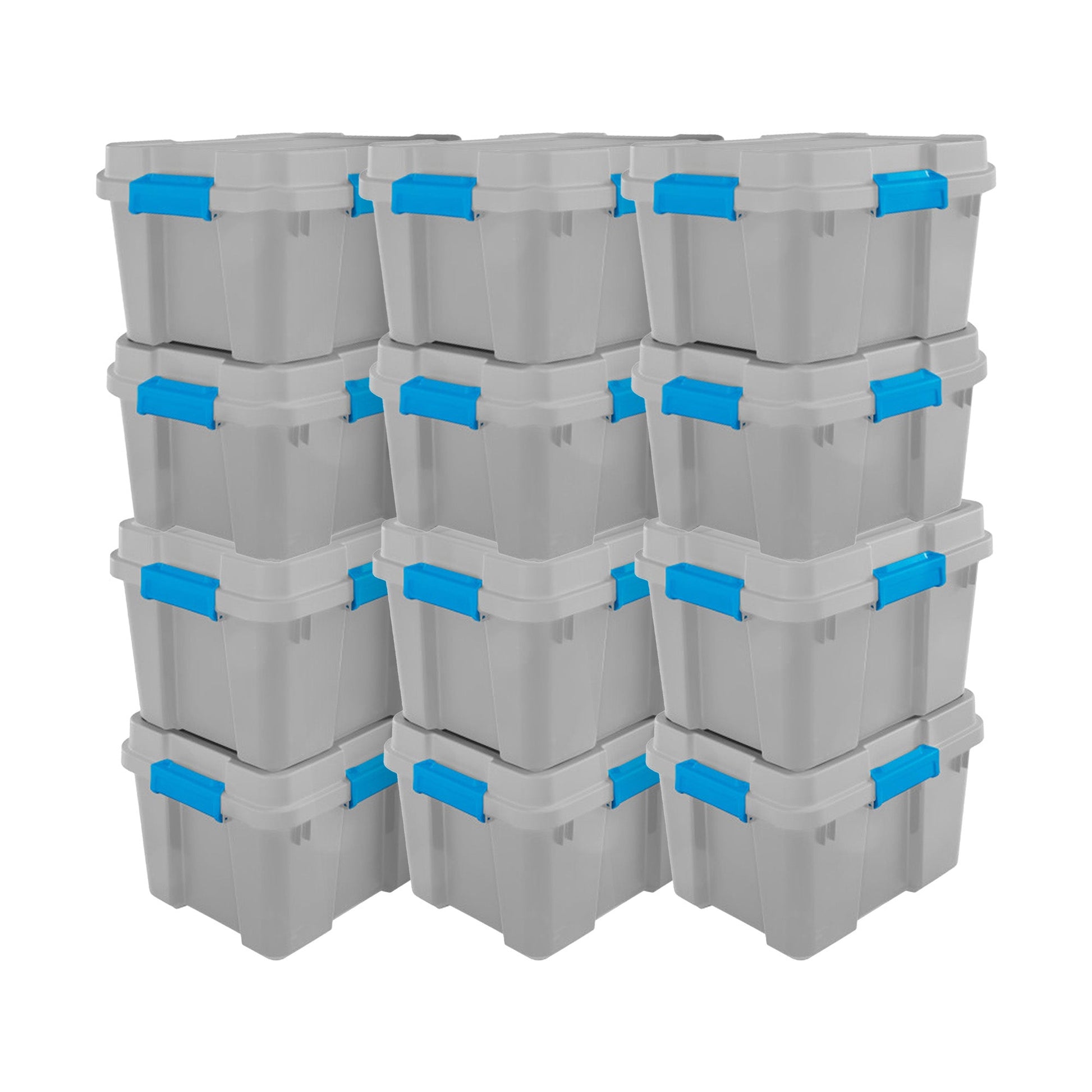 Sterilite 20 Gallon Plastic Home Storage Container Tote Box, Gray/Blue (12 Pack)