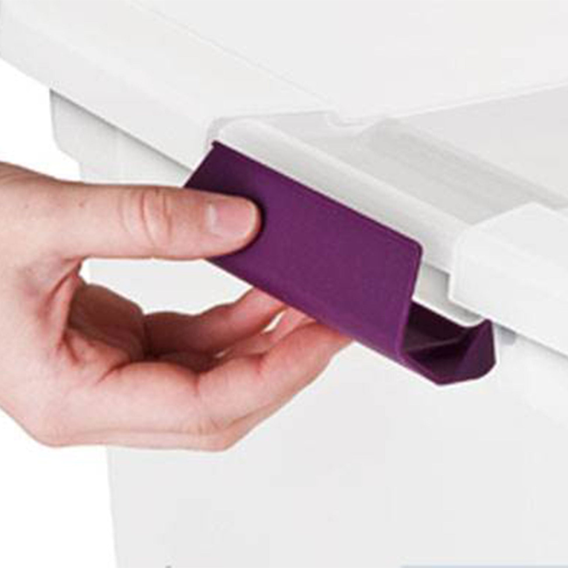 - Indented lids and contoured bases allow for stacking and provide access to untapped verticle storage space in your home