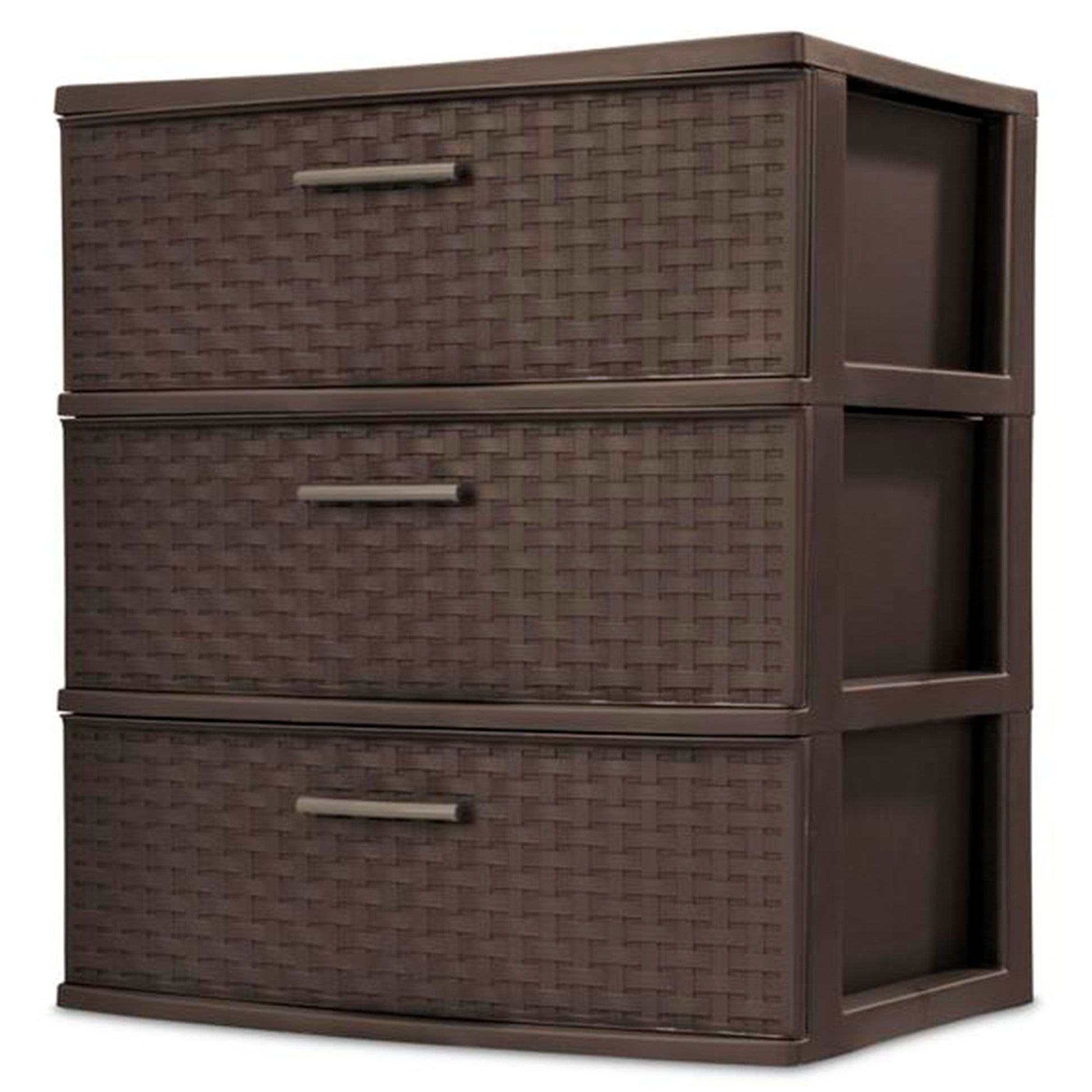 Sterilite 3 Drawer Wide Weave Storage Tower, Plastic Organizer Drawers, Brown