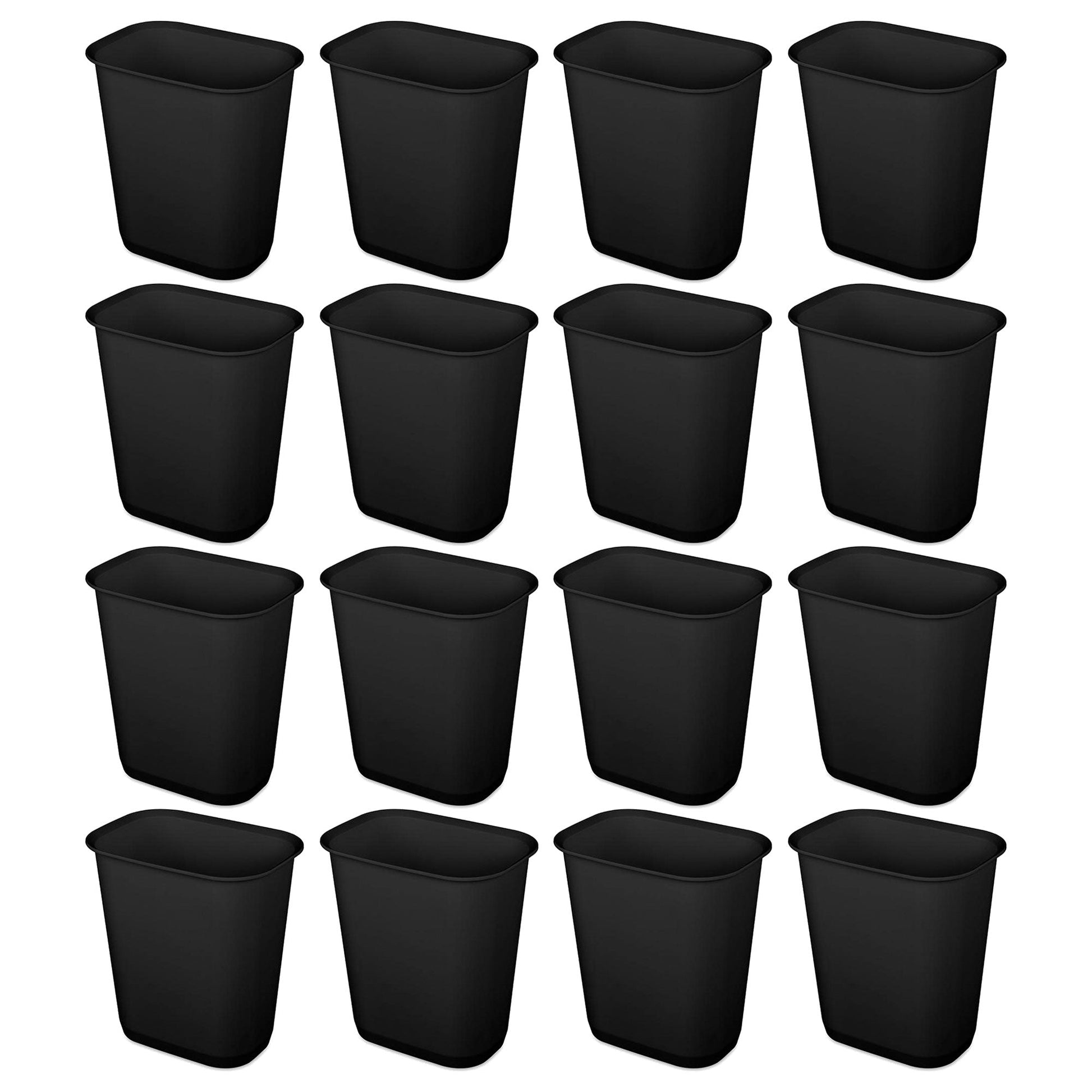 Sterilite 3 Gallon Rectangular Wastebasket Small Home Trash Bin, 16 Pack, Black