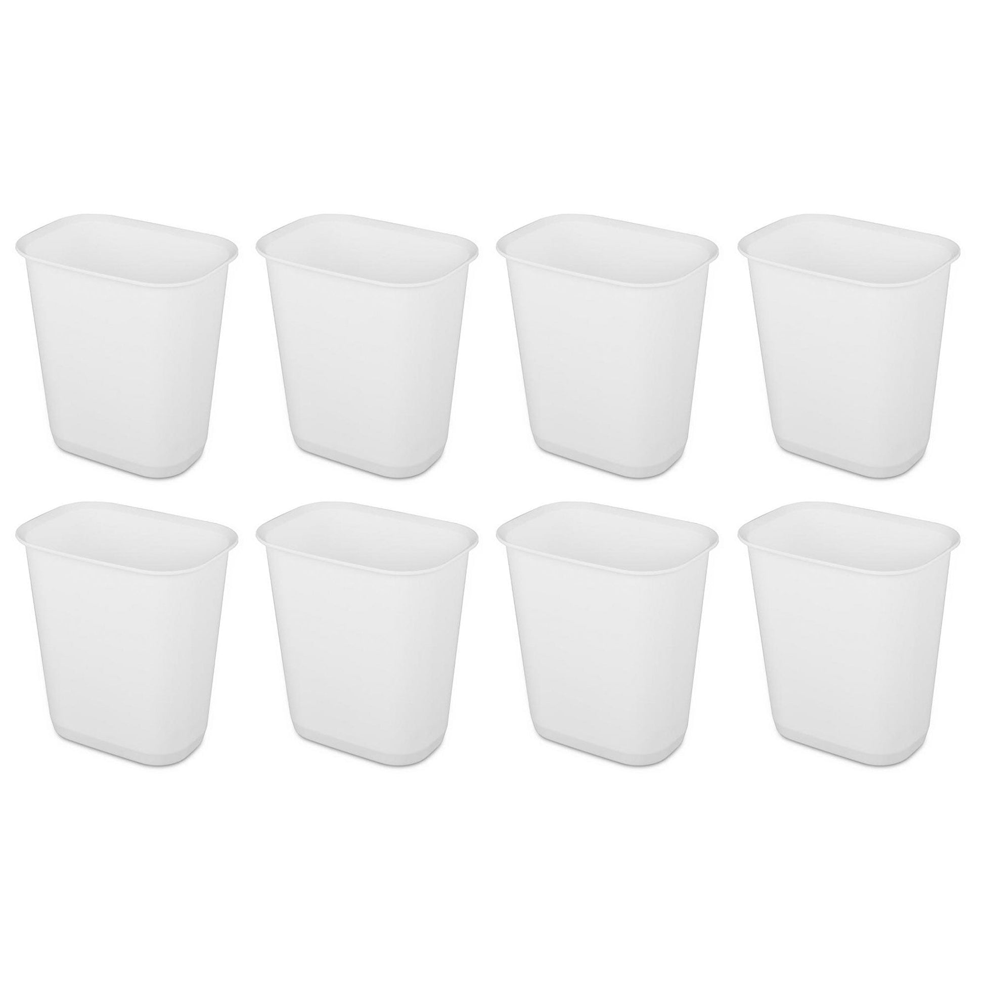 Sterilite 3 Gallon Rectangular Wastebasket Small Home Trash Bin, 8 Pack, White