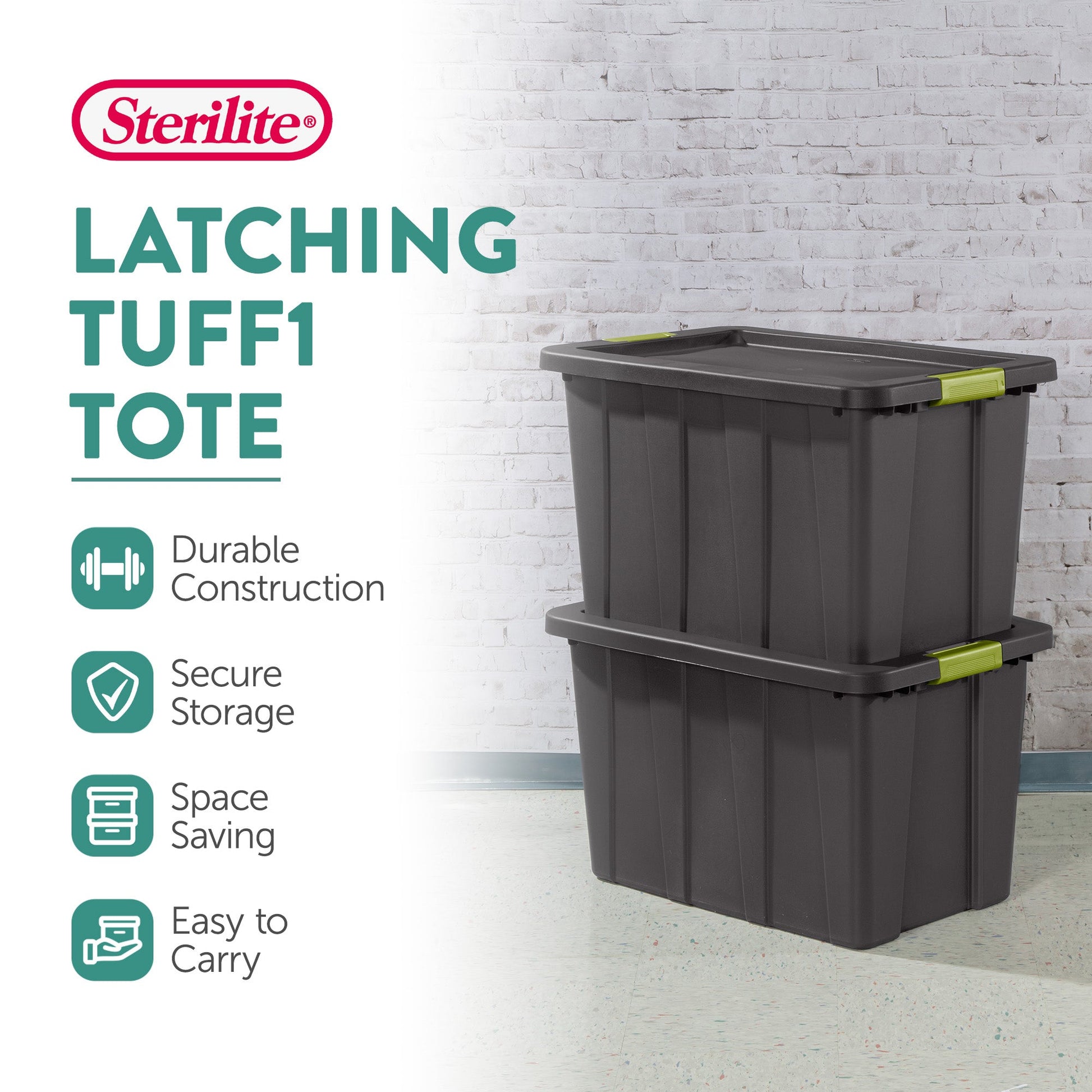 Sterilite 30 Gal Latching Tuff1 Stackable Storage Tote Bin w/ Latch Lid, 4 Pack