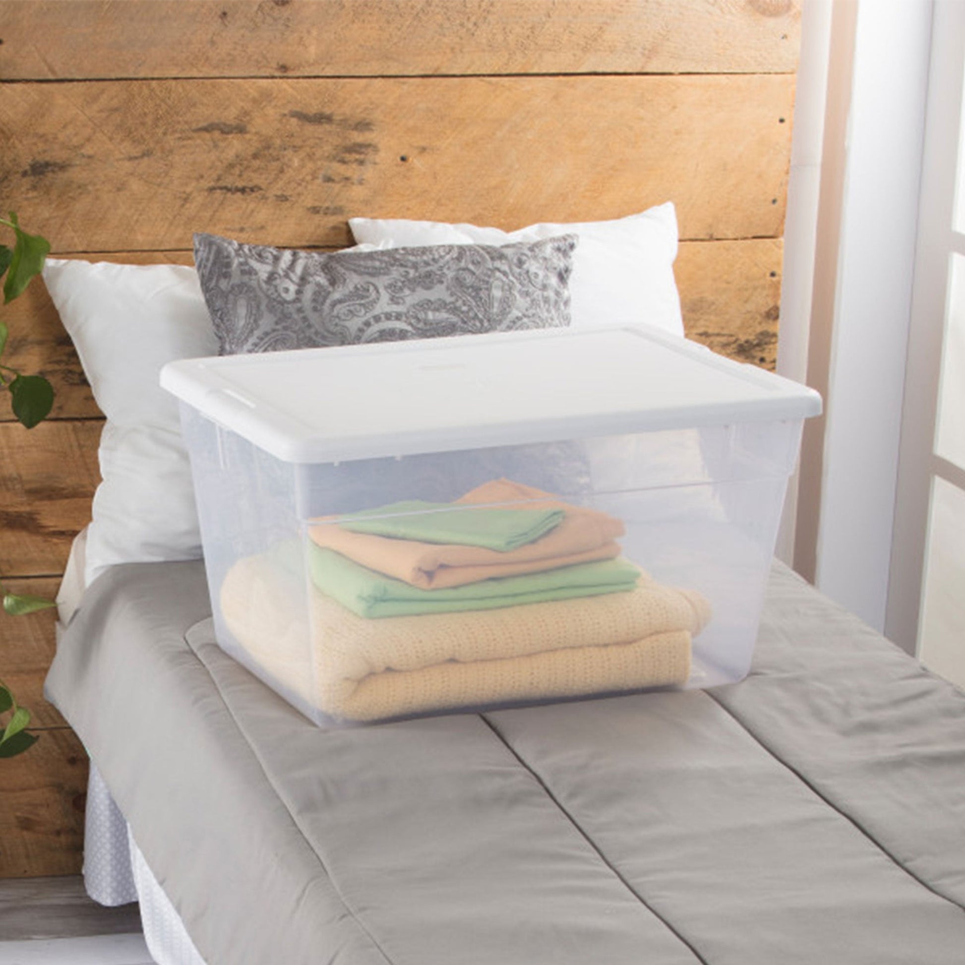 - Sterilite clear storage containers feature 56 quarts of storage space that will keep your home clean and clutter free
