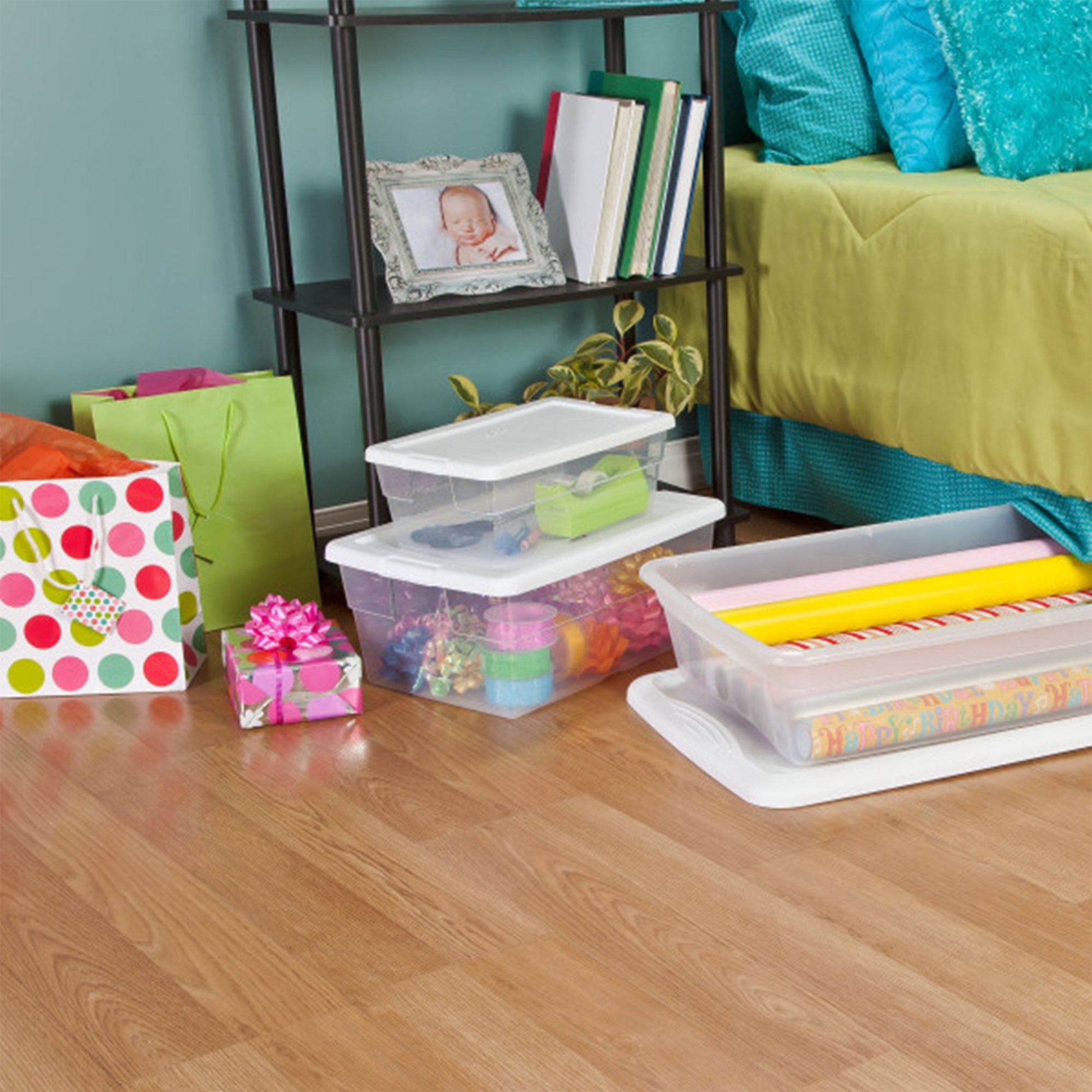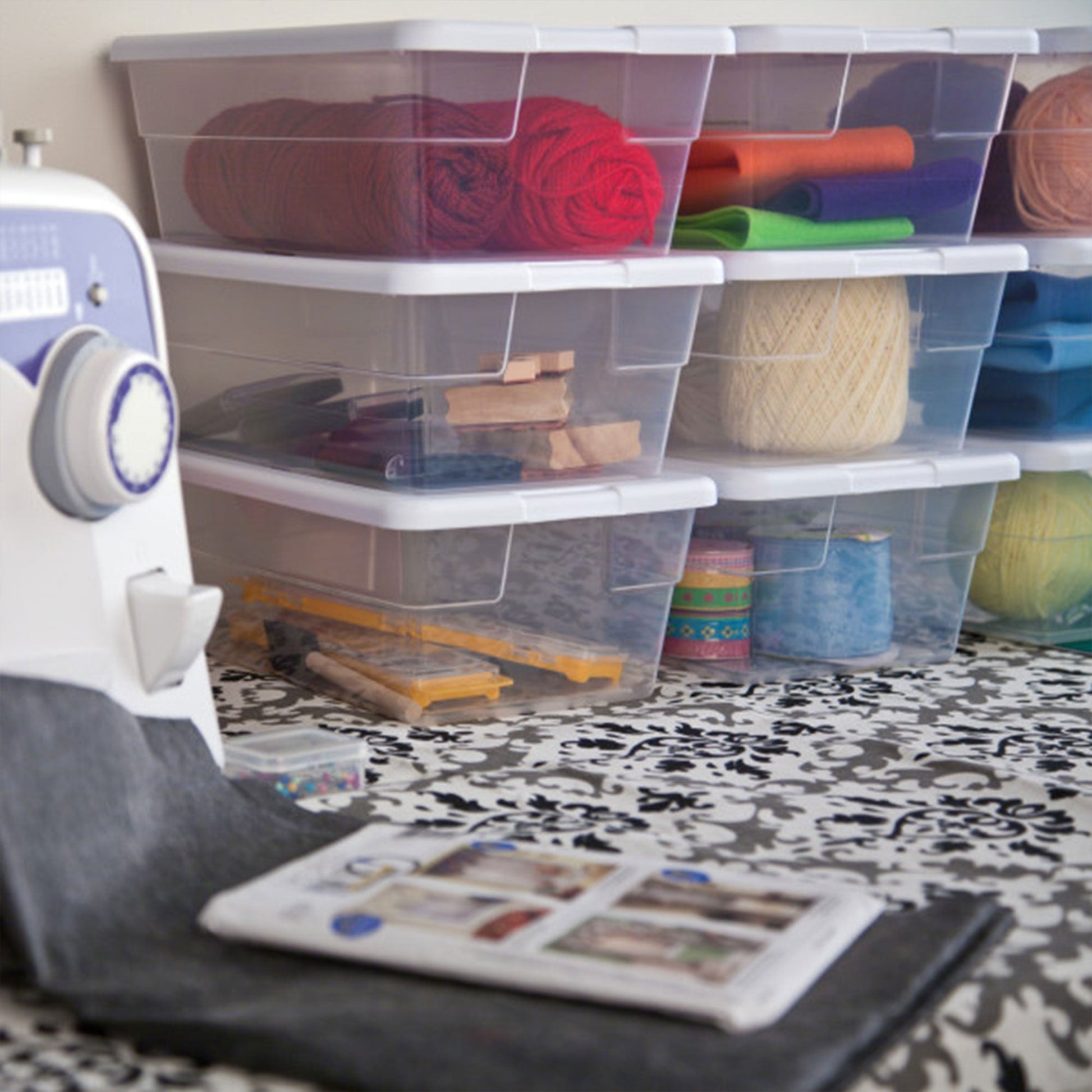 Make an organization a reality with the 6-Quart Plastic Stacking Storage Container Tote with Lid from Sterilite.