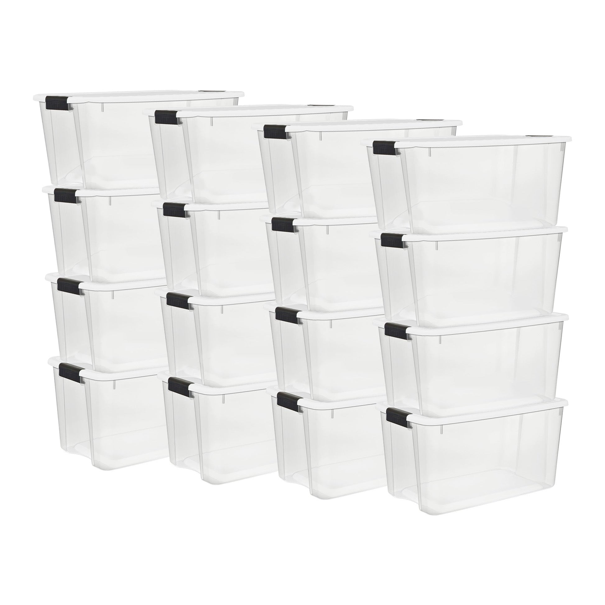 Sterilite 70 Qt Clear Plastic Stackable Storage Bin w/ White Latch Lid, 16 Pack