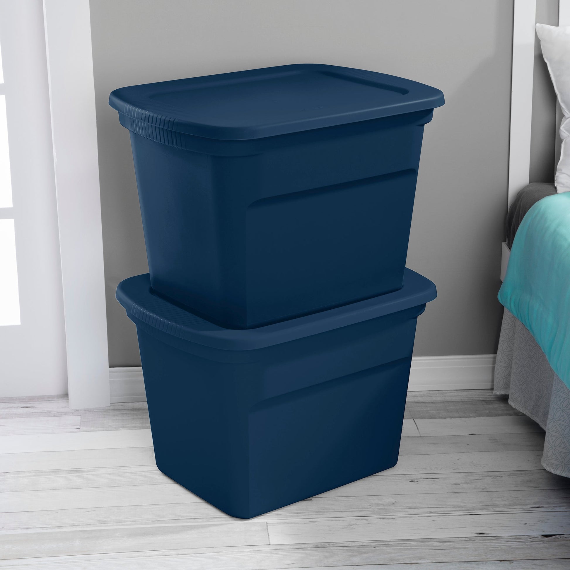 Sterilite Classic Lidded Stackable 18 Gal Storage Tote Container, Blue, 24 Pack