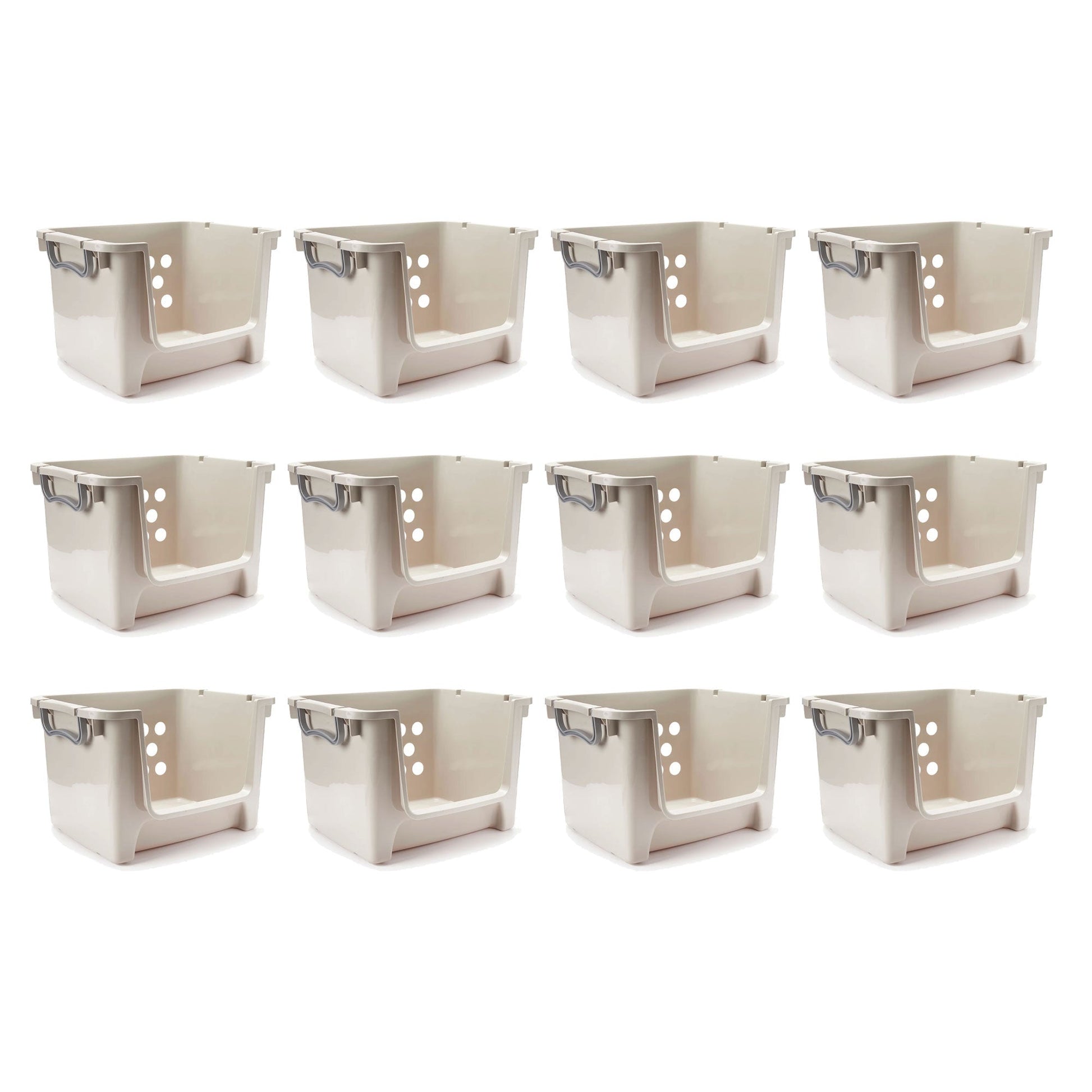 - Set of 12 open plastic bins with scoop front allows for easy access and the ability to view your items inside