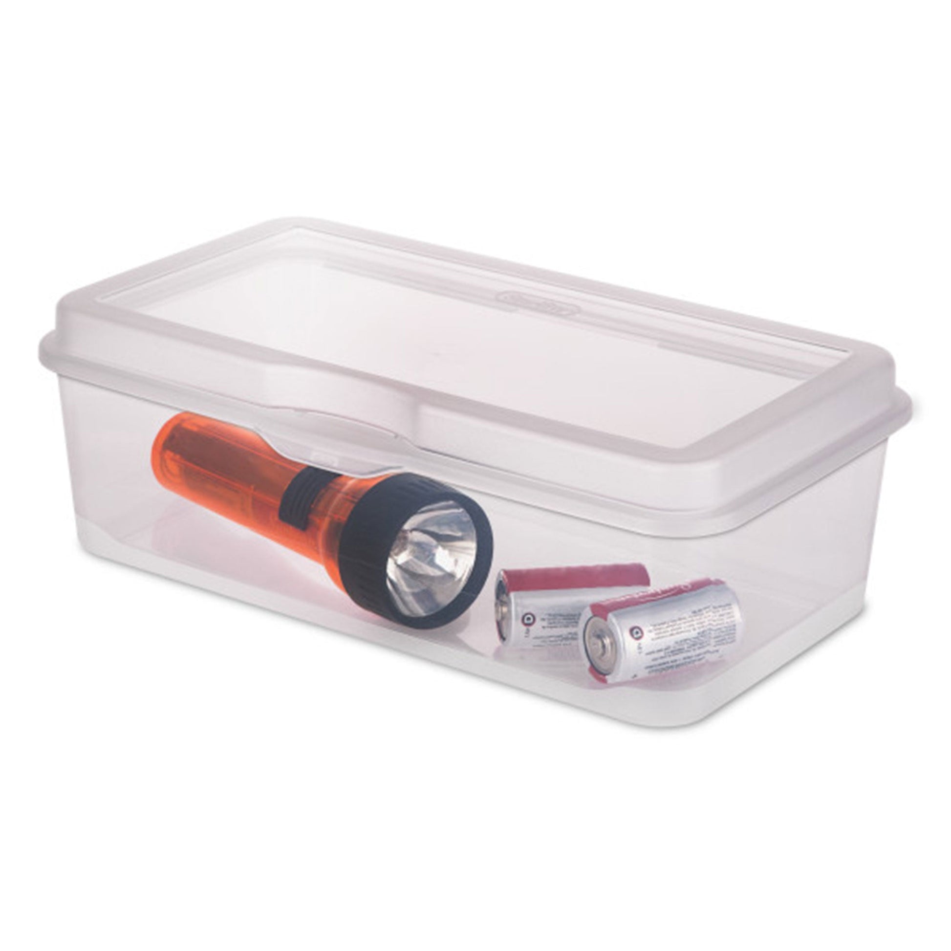 These FlipTop containers are the practical solution for reducing clutter and keeping smaller items contained. The enhanced hinge lid ensures the cover will never be misplaced and allows it to remain tightly closed during transport. Modular in design, these boxes securely stack both individually and are interchangeable with the Large FlipTop Storage Box.