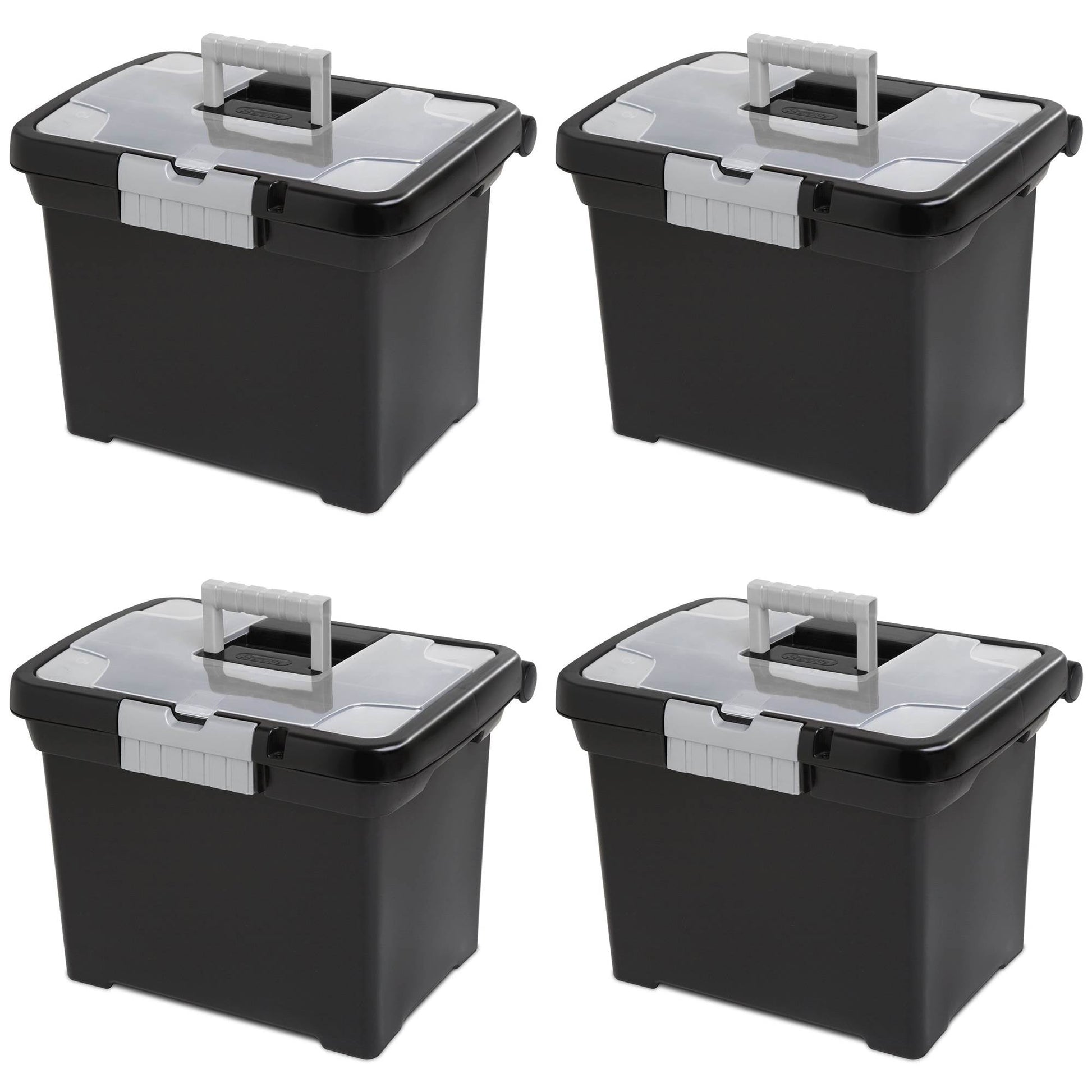Finding a perfect solution for storing and moving your moving letter-size hanging file folders will be at ease with the 4-Pack of Sterilite Portable File Boxes. These organizers will undoubtedly help you organize your documents or transport file folders effectively.