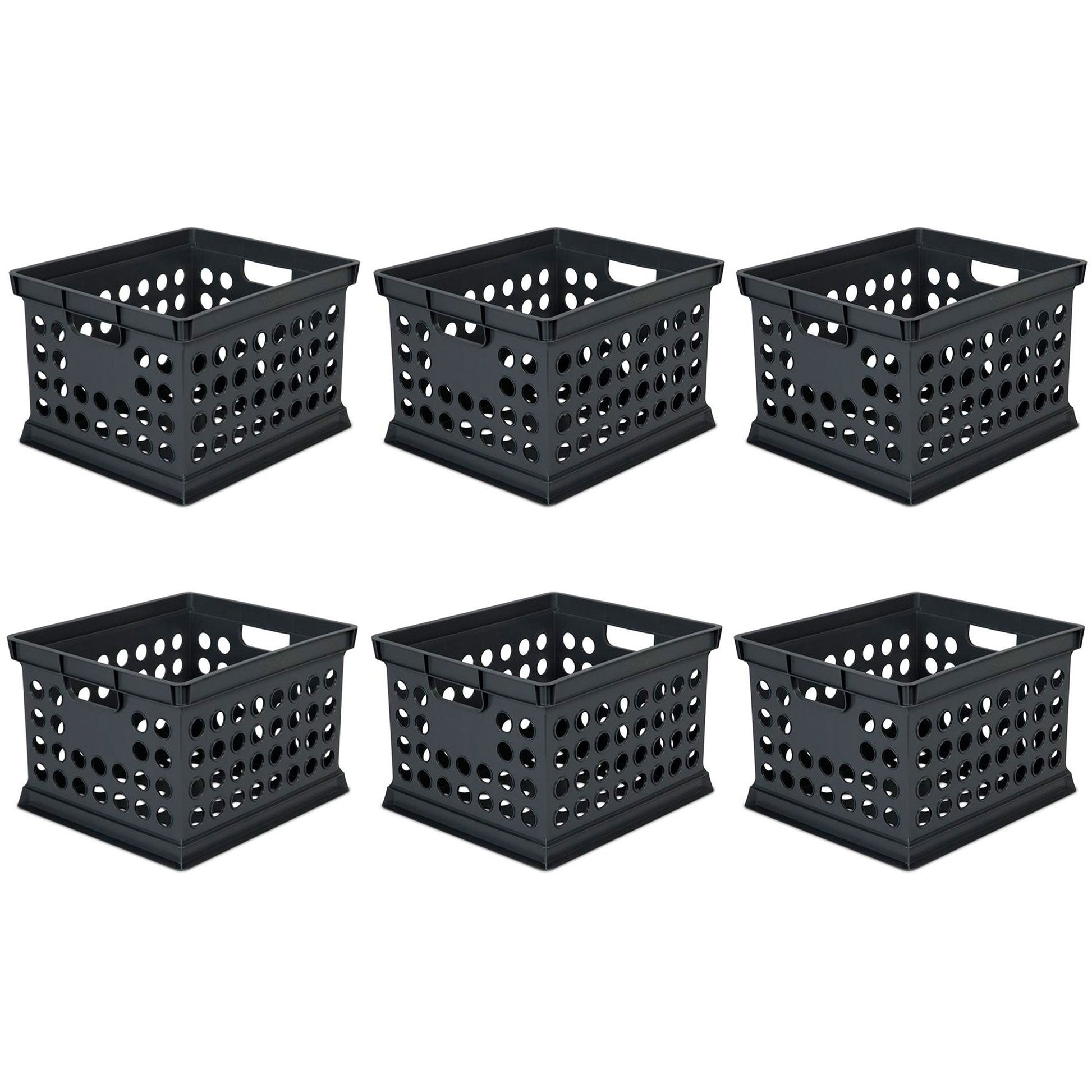 Sterilite Stackable Plastic Storage Open Crate Bin Organizer Box, Black (6 Pack)