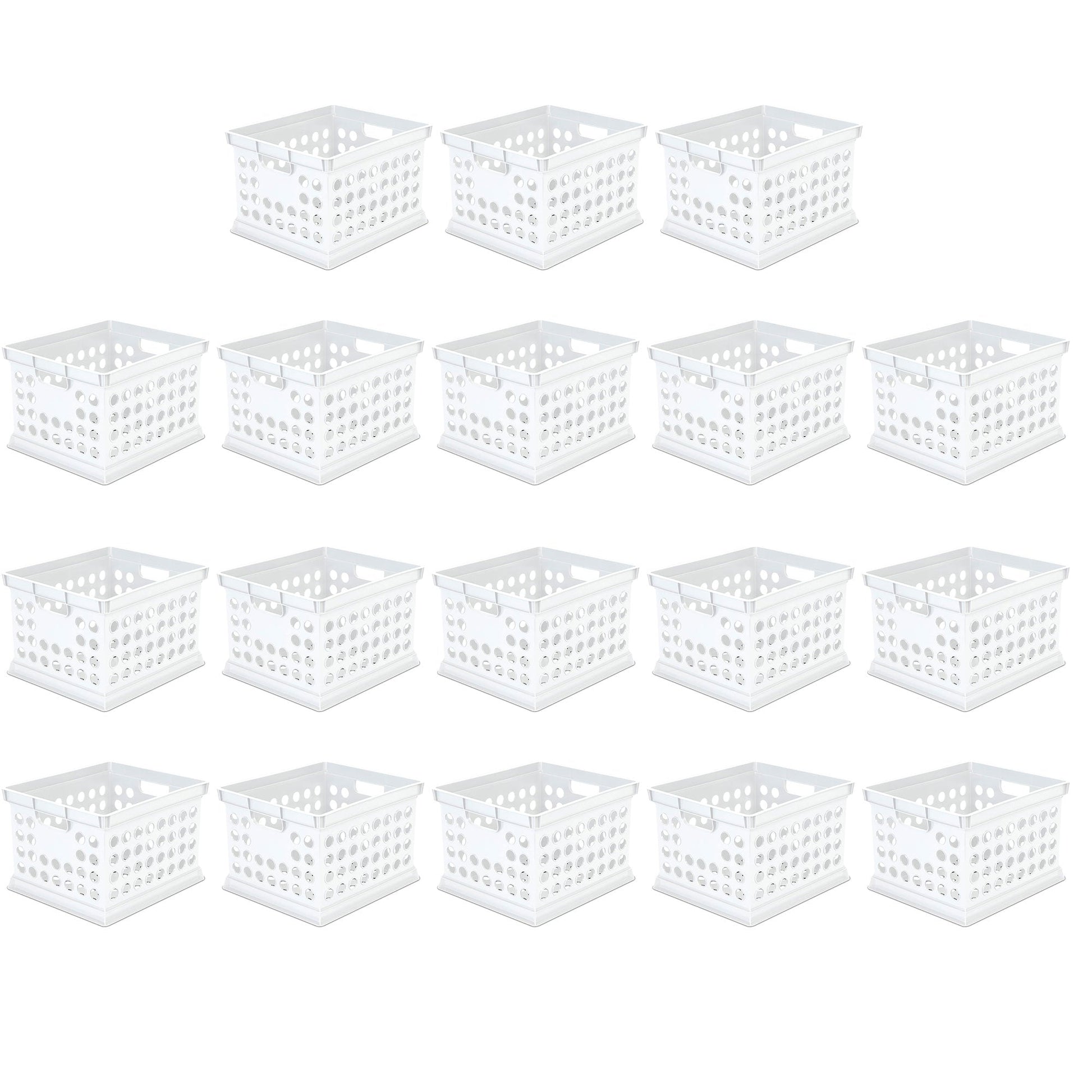 Sterilite Stackable Plastic Storage Open Crate Bin Organizer Box, White, 18-Pack