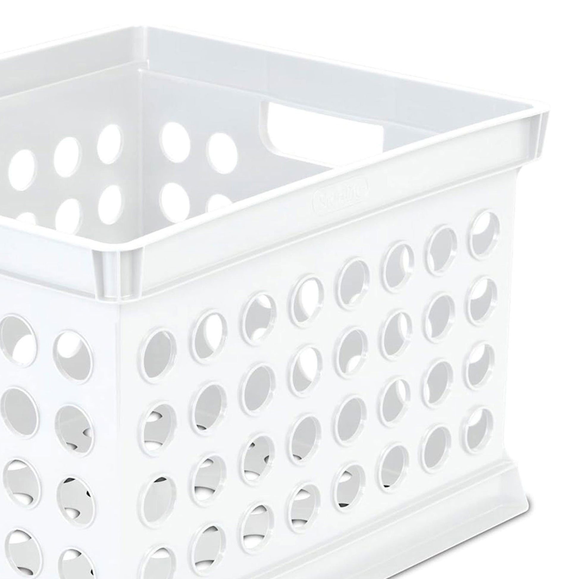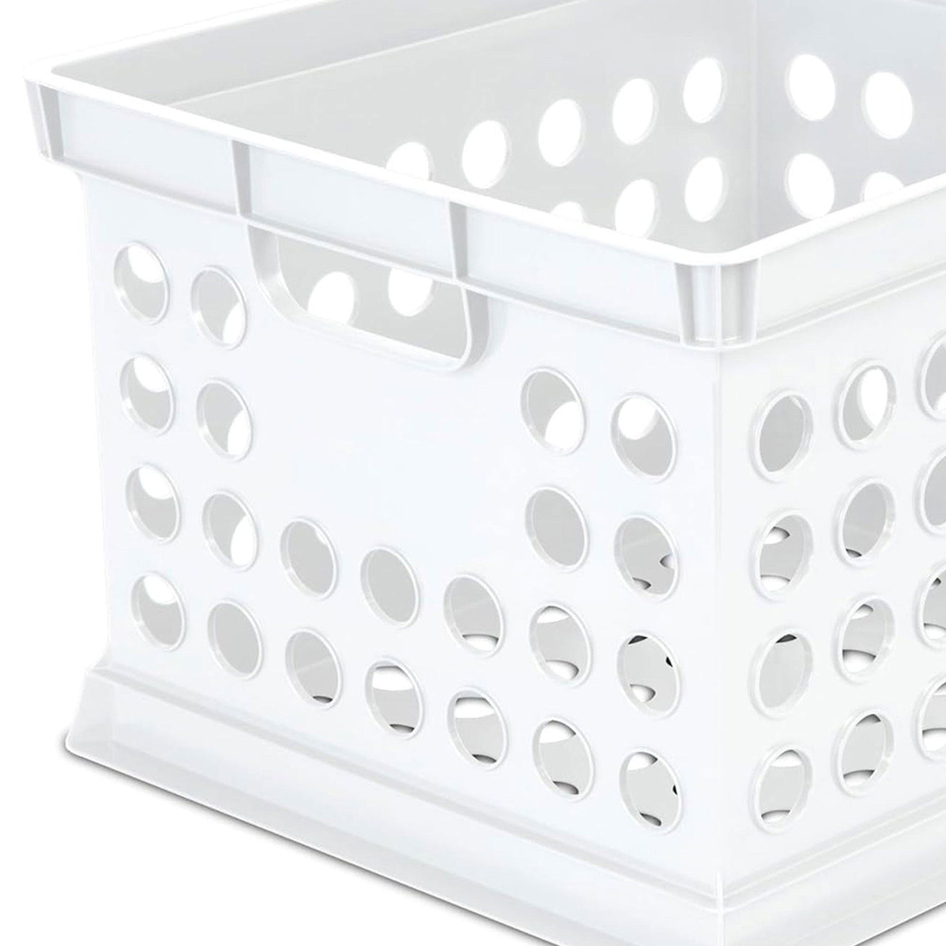 Customize your storage area with a stackable design to create pleasing, compact organizers that fit your room. When the crates are stacked, you can unleash the power to efficiently store multiple items vertically. The durable, plastic design features a sleek white color that looks good wherever you place the crate. Storage box features integrated handles to easily move the items, letting you transport your essentials for on-the-go storage.