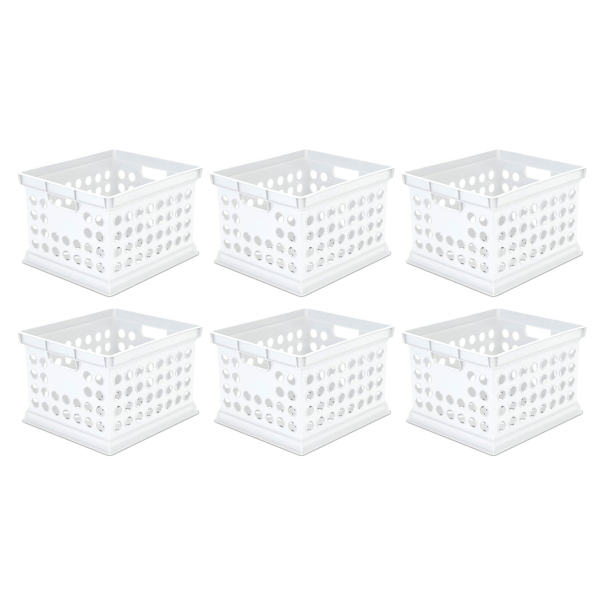 Sterilite Stackable Plastic Storage Open Crate Bin Organizer Box, White, 6-Pack