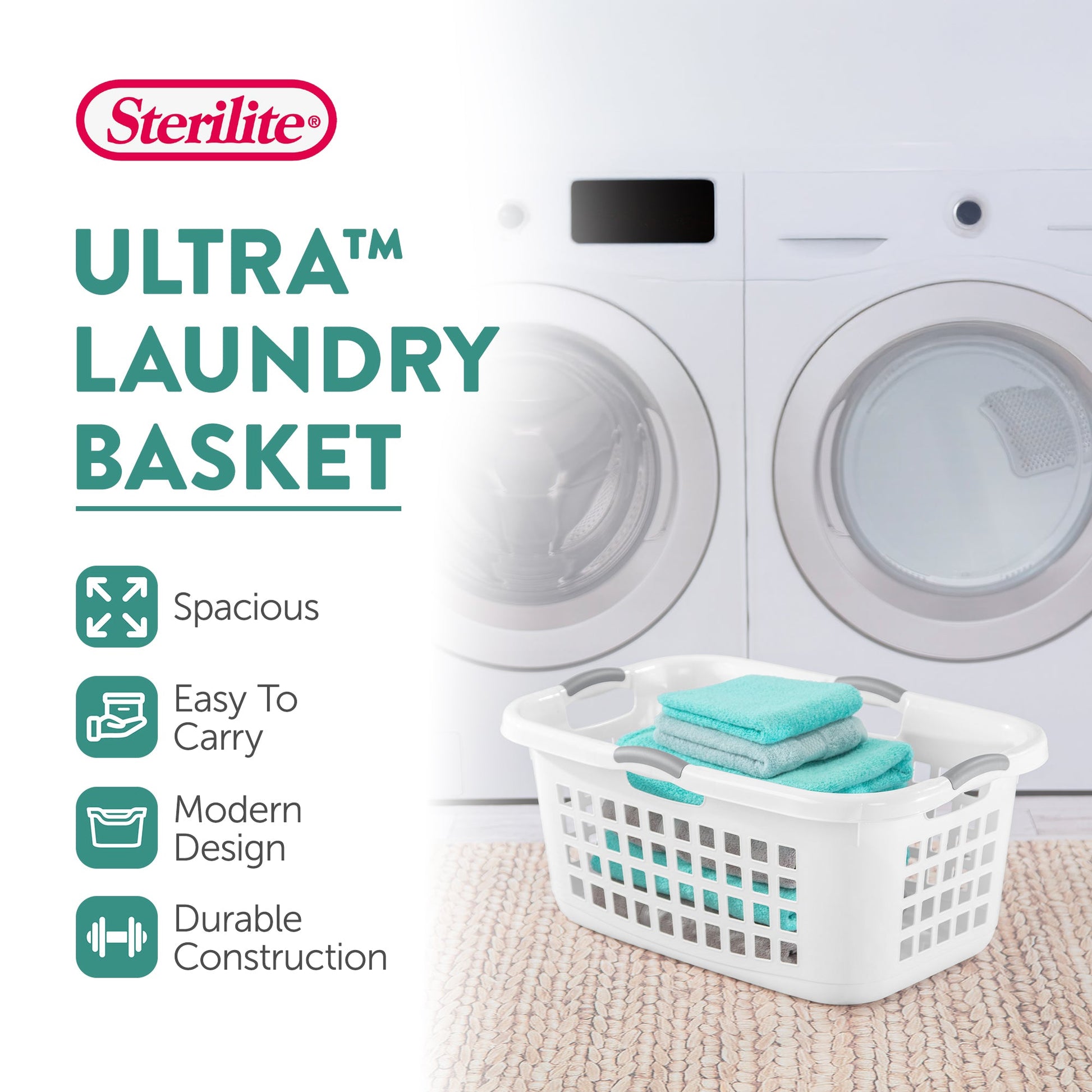 Make laundry day easy with this set of 12 Sterilite Ultra 2-Bushel 71-Liter Laundry Baskets. With a generous 2-bushel (71-liter) capacity, these laundry baskets make it easy to carry, sort, and fold clothes, towels, and sheets. This package includes 12 laundry baskets.