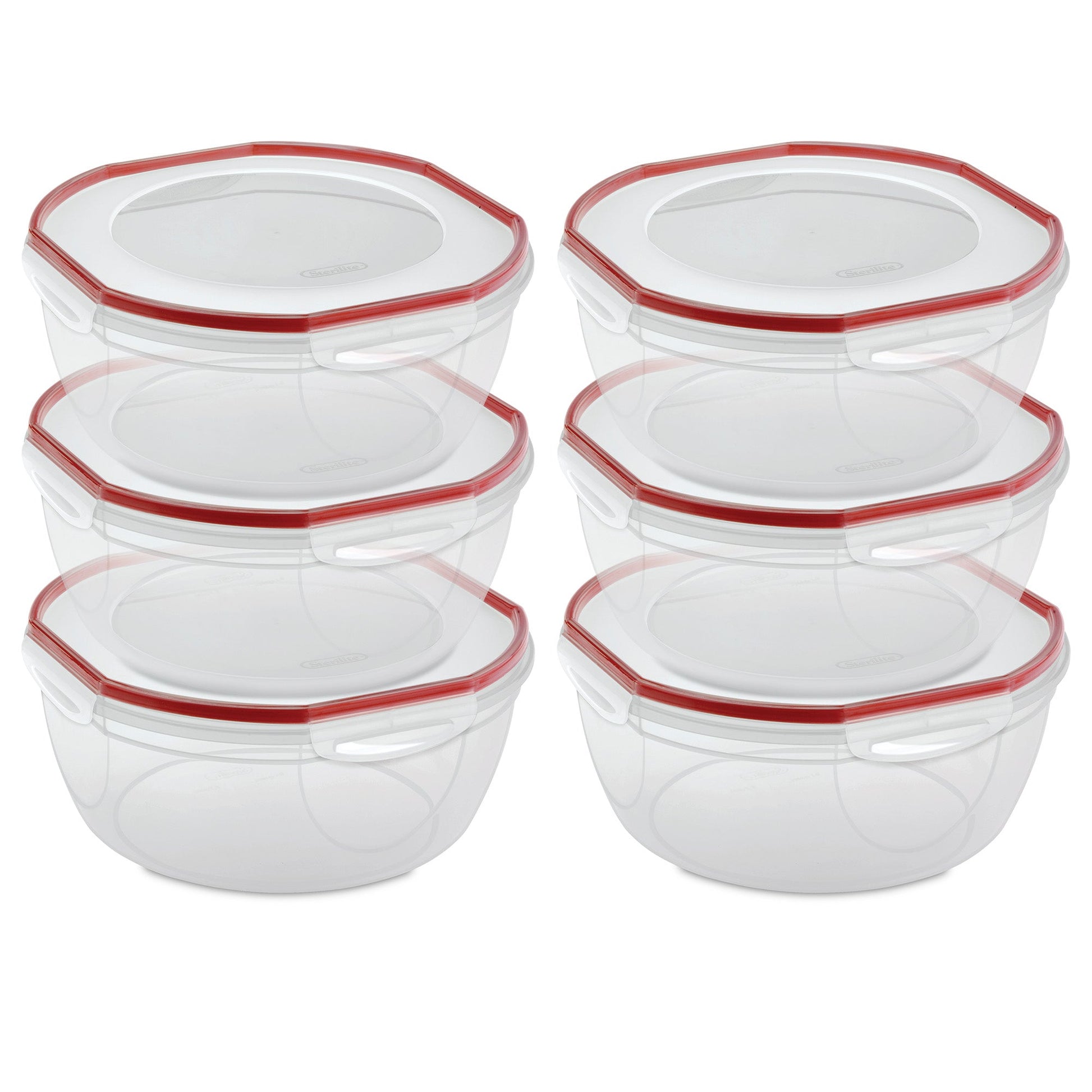 Enjoy an upgraded system of food storage organization with this 6-Pack of Ultra-Seal 8.10 Quart Plastic Food Storage Bowl Containers from Sterilite.