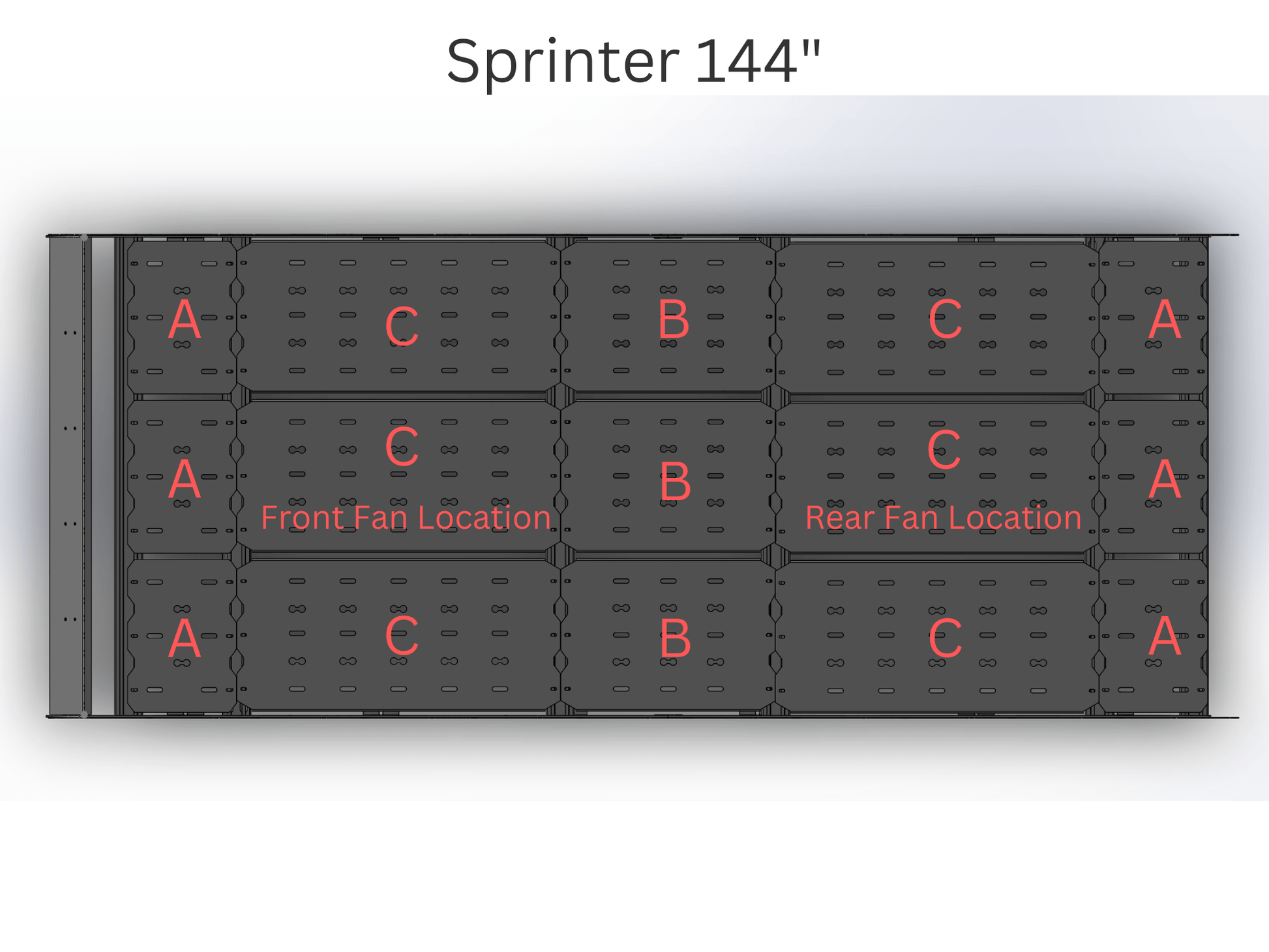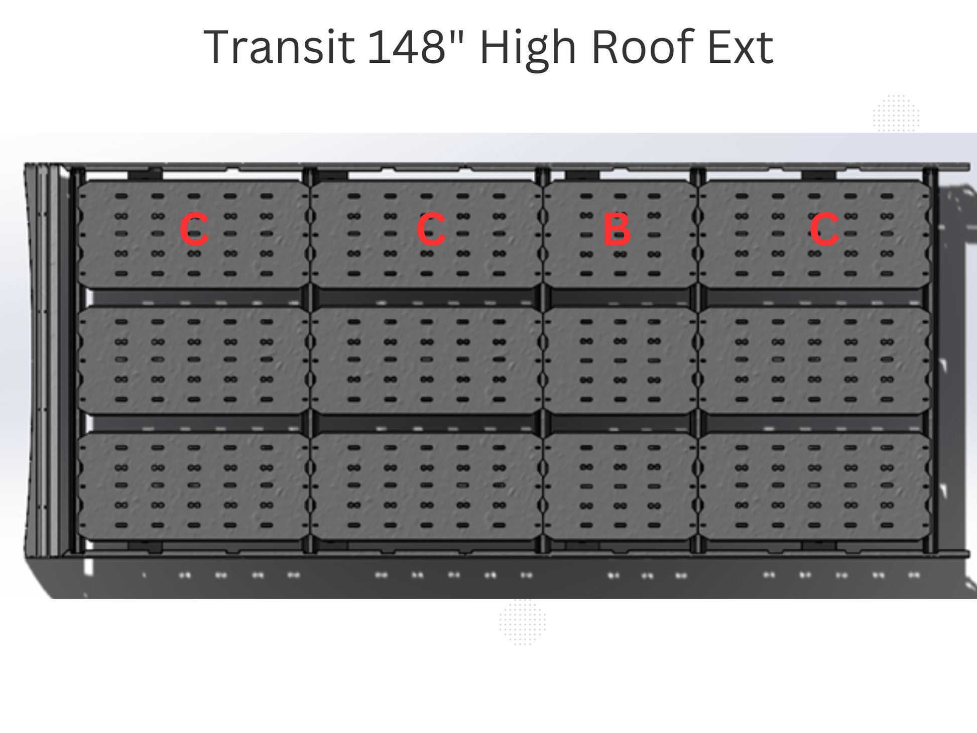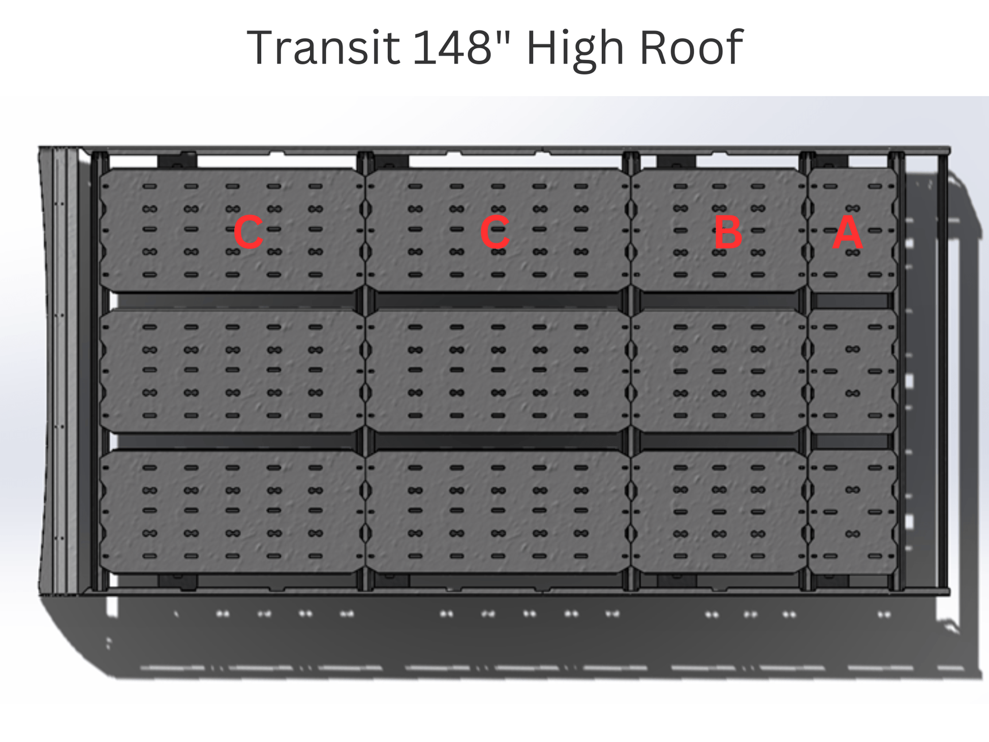 - For the Sprinter 144" Strata Roof Rack you will need 6 panel A, 3 Panel B, and 6 Panel C to make a full complete roof deck. if you have fan on the back or the front just minus one or two Panel C