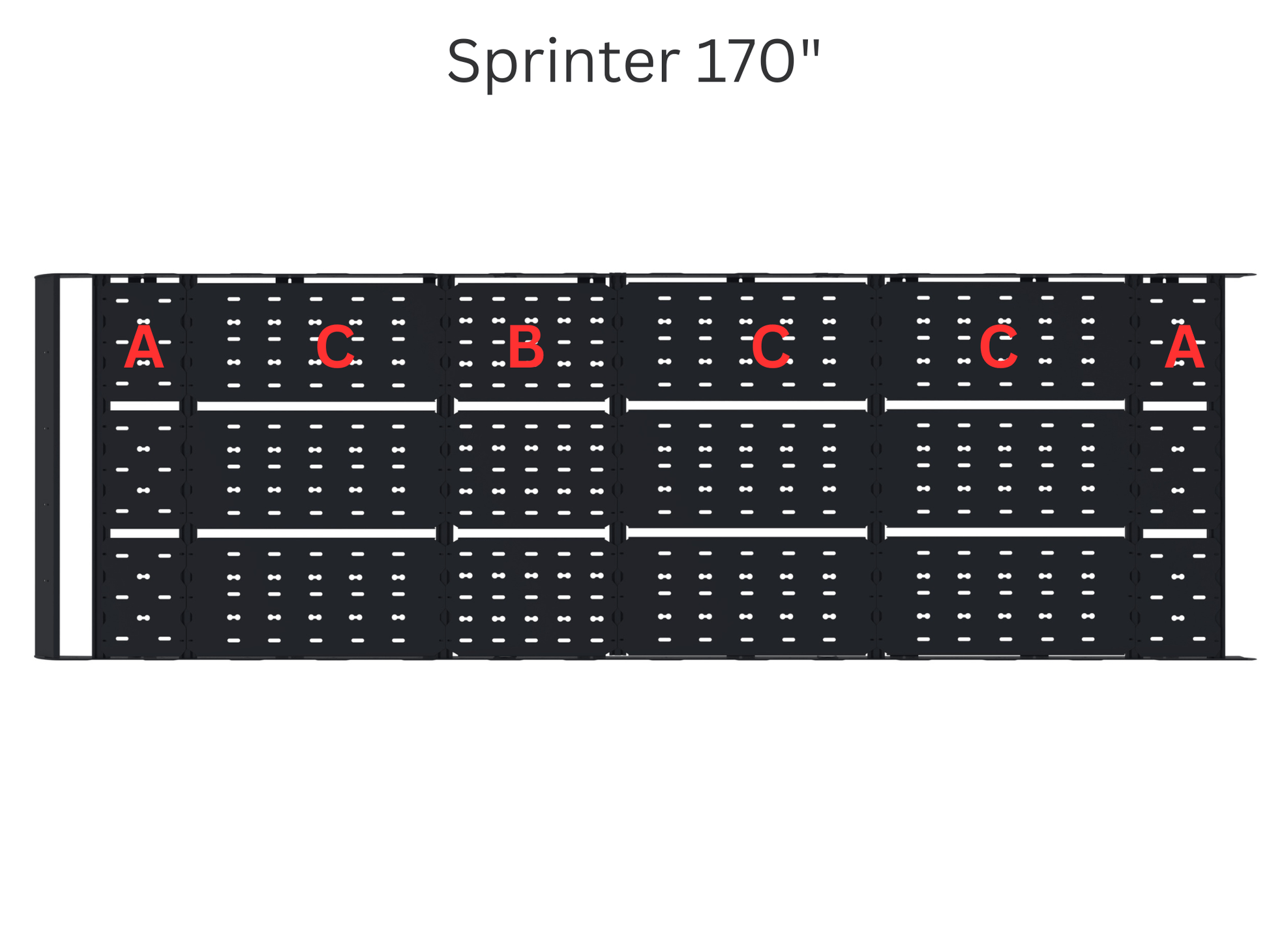 - For the Sprinter 170" Strata Roof Rack you will need 6 panel A, 3 Panel B, and 9 Panel C to make a full complete roof deck. if you have fan on the back or the front just minus one or two Panel C