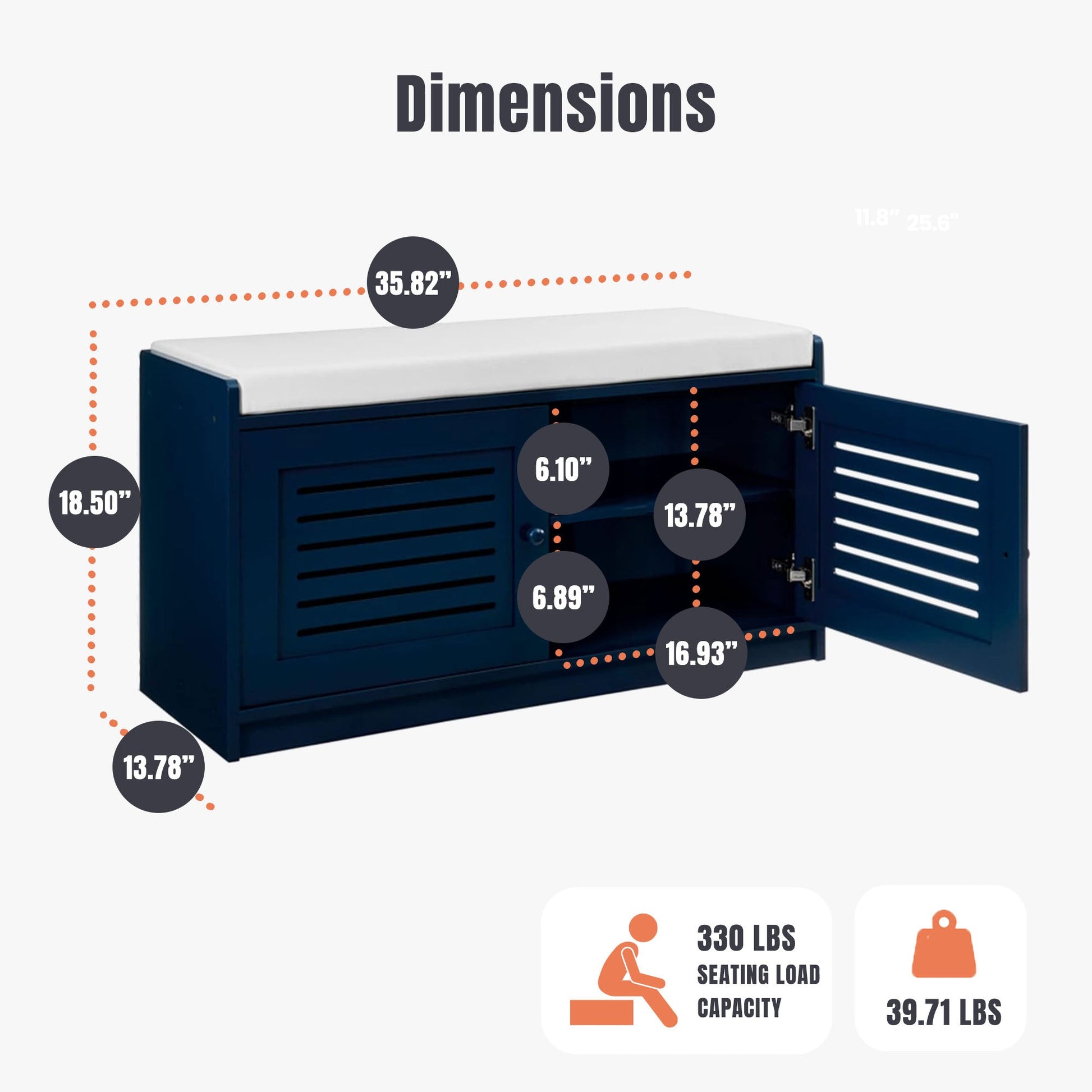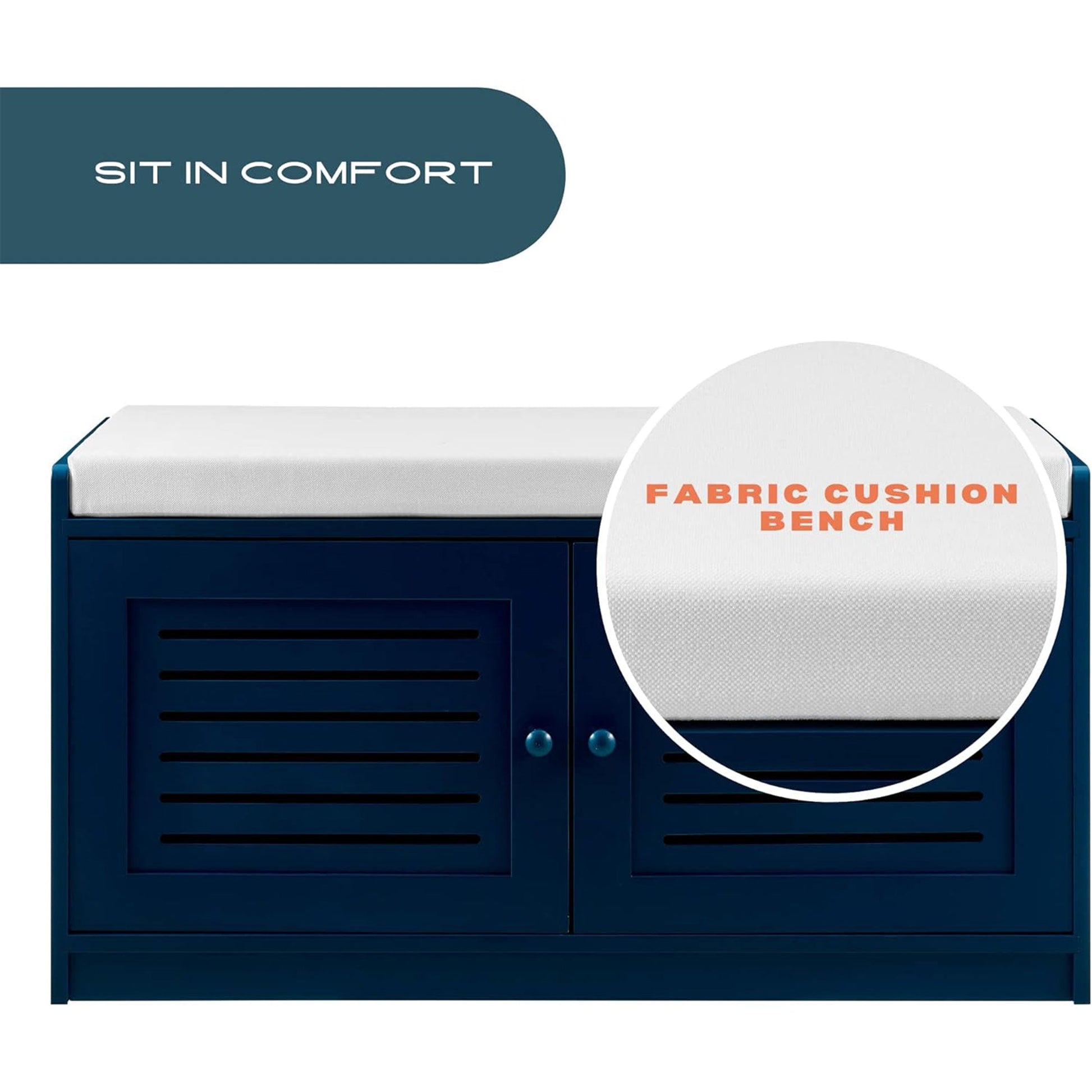 Sturdis Modern Shoe Storage Cushioned Seat Bench with Adjustable Shelves, Blue