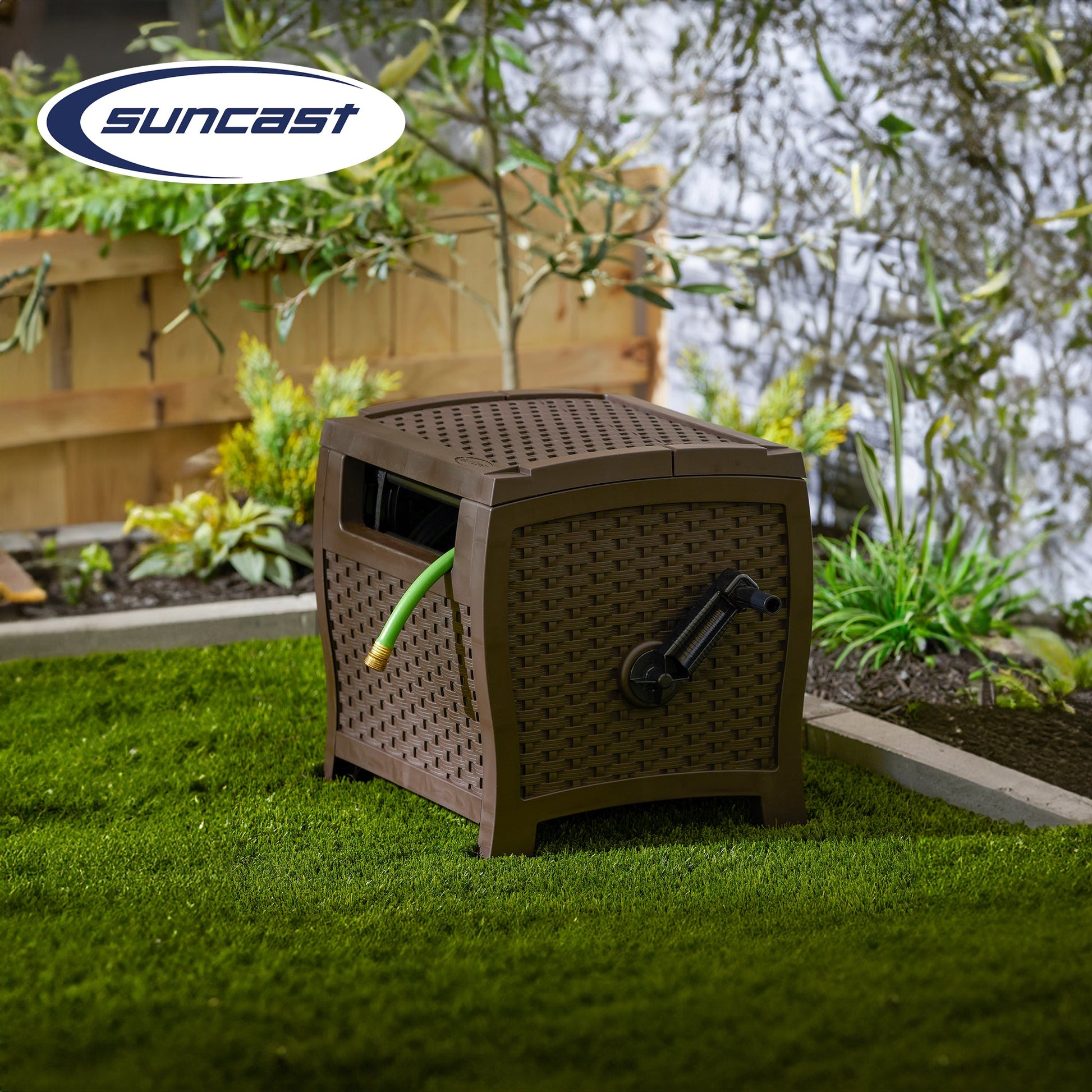 - Durable, contemporary design that conceals both the water hose and reel