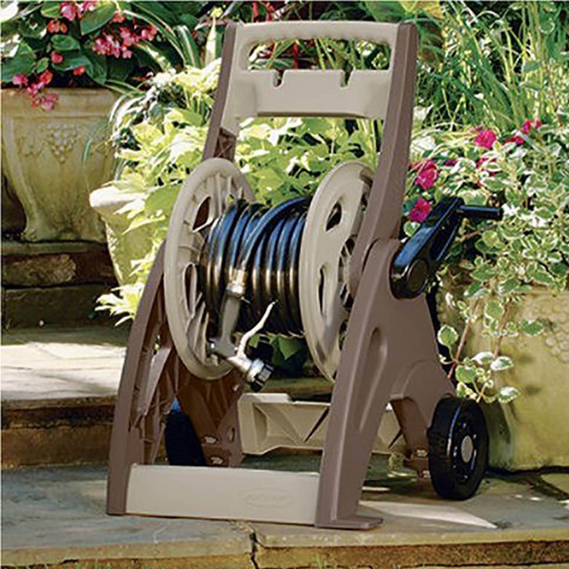Wind up that garden hose of yours and keep your yard looking neat and tidy with this Suncast 175-foot hose mobile Garden Hose Reel Cart 2-Pack.The sturdy, resin construction ensures your 175-foot vinyl hose is wound up securely and out of the way. It comes fully assembled so you can get to watering your garden, filling up that pool, or washing your car right away. The patented, Easylink system makes sure a watertight connection is between the hose reel and hose, and the light and dark taupe colors make sure it looks good as neighbors pass by. Convenient and mobile, this Suncast 175-foot hose mobile Garden Hose Reel Cart looks as pretty as your plants when it's posted up next to your lawn and garden.