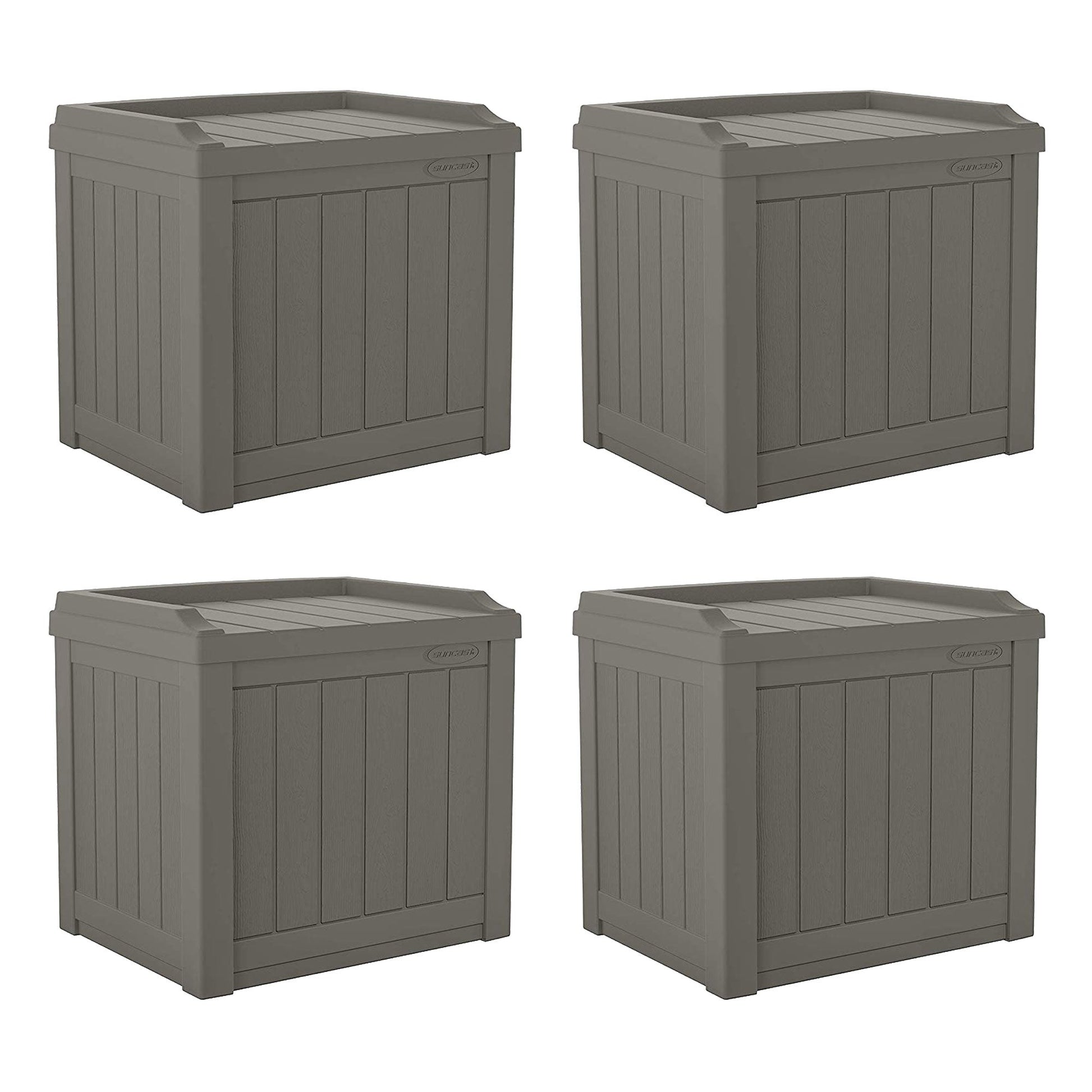 Suncast 22 Gallon Outdoor Patio Small Deck Box with Storage Seat, Stone (4 Pack)