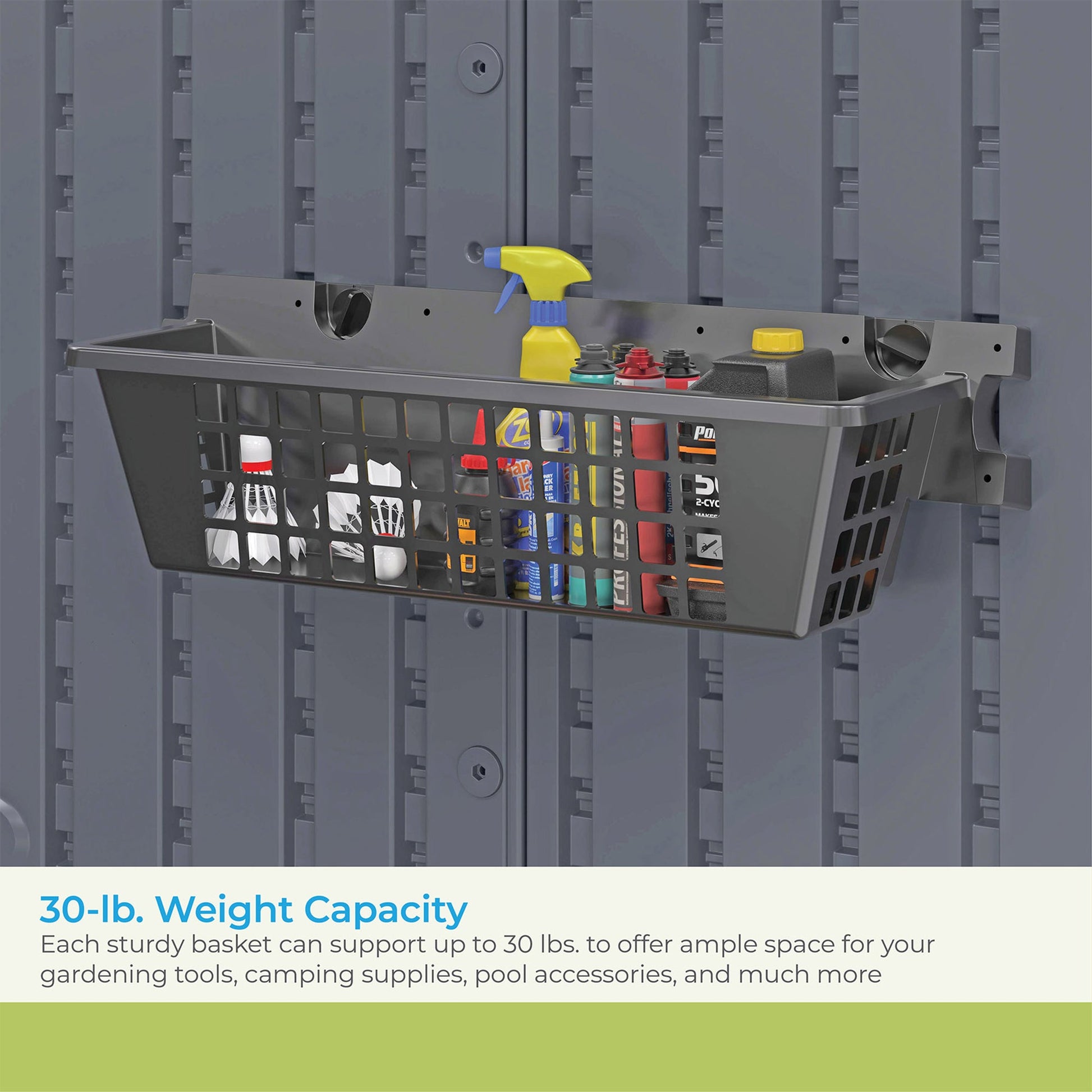 - Set of 2 convenient shelf baskets allows you to add even more storage to your shed