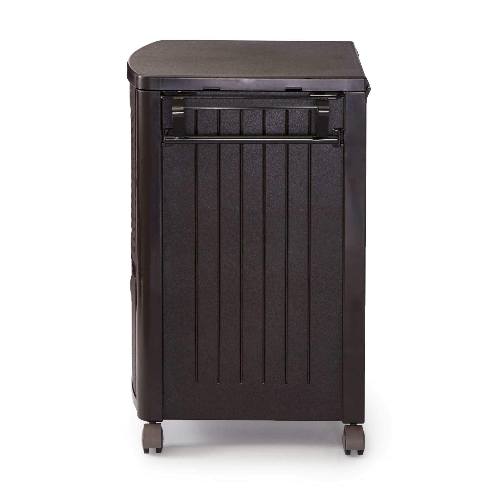 Get the party invites out, because this Suncast 77-Quart Resin Wicker Patio Cooler is ready to get the festivities rolling. Comes with patio cooler and wicker trash hideaway. This stylish, resin wicker cooler might just be the life of your party. With its beautiful java color and design, this piece will not only start the conversation, but will be the talk of your entire shin dig. It has a 77-quart capacity that holds 72 cans or 6 2-Liter bottles and shows off a wire basket to hold additional cans, bottles, or any other accessories you need. The built-in in cabinet and towel bar also make your life easy-peasy for summer night patio chilling. There's no need to leave your backyard this summer when you have this Suncast Resin Wicker Patio Cooler full of all of the things you love surrounded by the ones you love. This Suncast outdoor trash hideaway has a stylish design that looks great on most patios or decks. The wicker design compliments most any patio furniture or home décor. This Suncast outdoor trash hideaway unit includes a latching lid and has a solid bottom panel, which keeps garbage from spilling out all over the patio or deck. Standard 30-33 gallon garbage bags fit perfectly inside this Suncast trash hideaway, so it's perfect for poolside areas, patios, and decks that get lots of use.