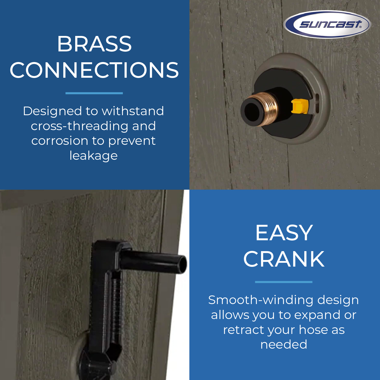 This pot can hold up to 175 feet of a standard 0.63-inch vinyl hose, while the attractive wood-like pattern design gives a farmhouse twist to your outdoor setting, entirely concealing your hose, protecting it from UV rays, and extending the life span. Featuring a Slid Trak hose guide, this provides manual tracking assistance for even rewinding onto the real to maximize capacity. With Smart Tube cross-threading, you can be sure that this pot will not leak onto your backyard patio settings. Constructed of high-quality materials that resist harsh weather conditions, this durable hose storage pot is easy to maintain and built to last.