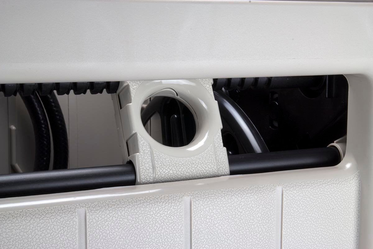- Built with space to store 225 feet of 5/8-inch standard vinyl hose