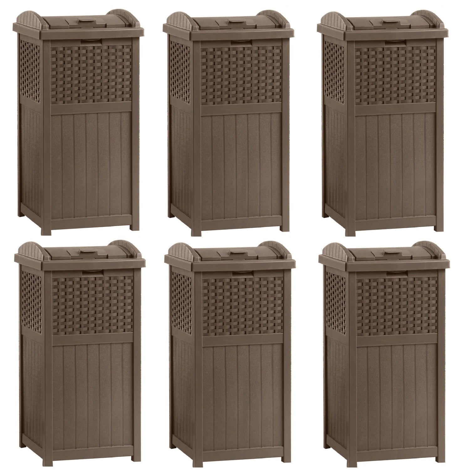 Suncast Trash Hideaway 33 Gallon Resin Wicker Outdoor Garbage Container (6 Pack)