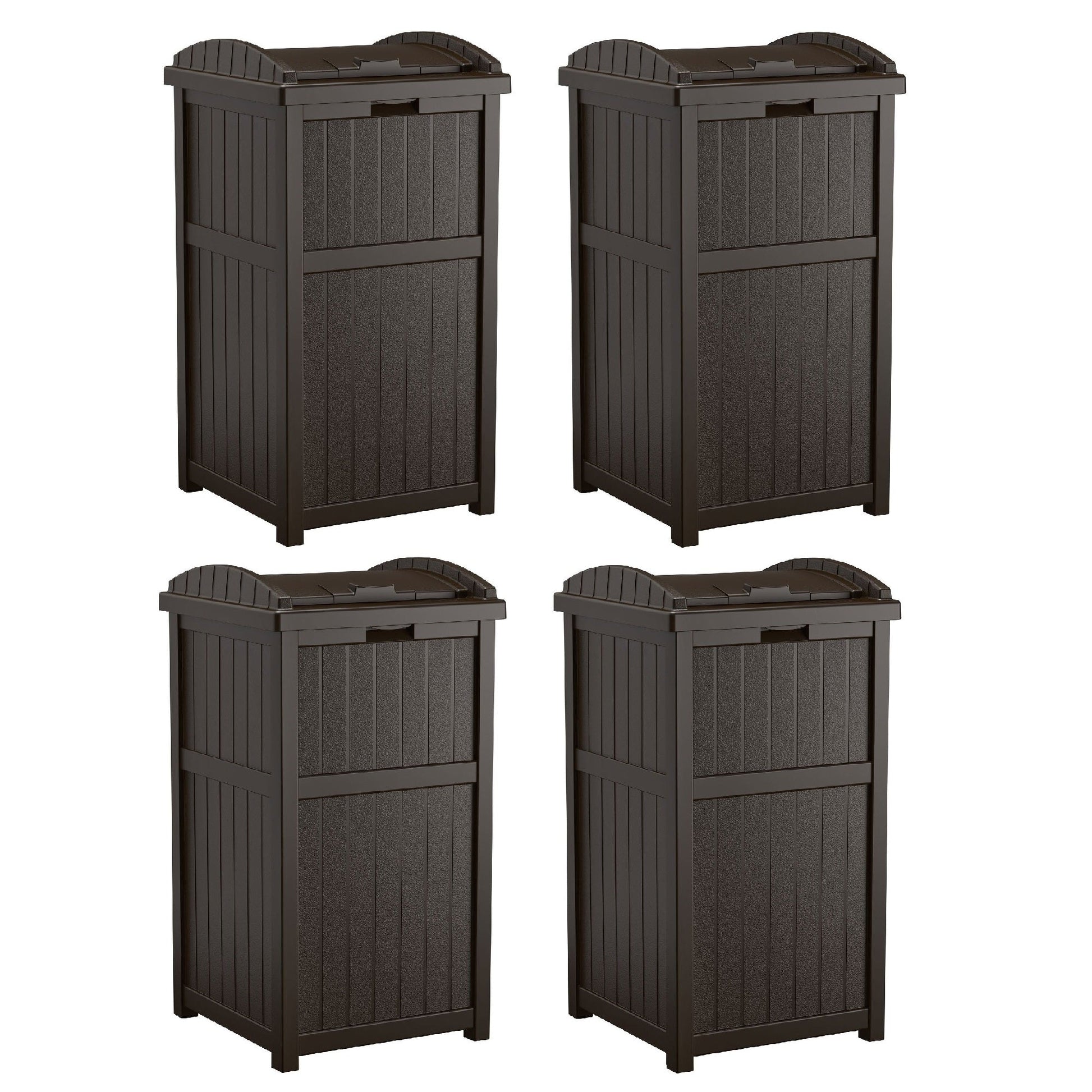 Suncast Trash Hideaway Outdoor Patio 33 Gal Garbage Waste Trash Can Bin (4 Pack)