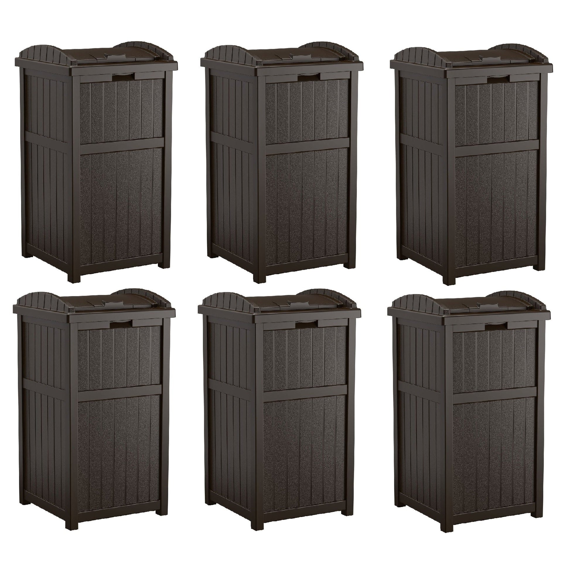 Suncast Trash Hideaway Outdoor Patio 33 Gal Garbage Waste Trash Can Bin (6 Pack)