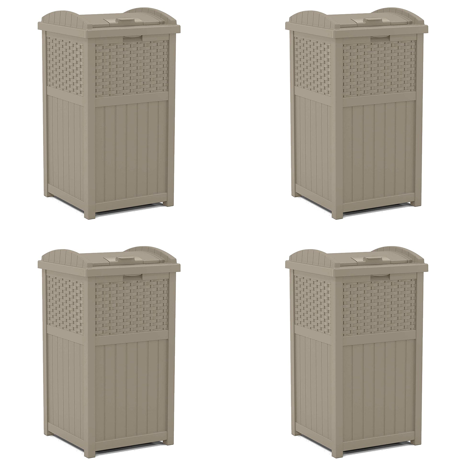 Suncast Wicker Plastic Hideaway Trash Can with Latching Lid, Dark Taupe (4 Pack)