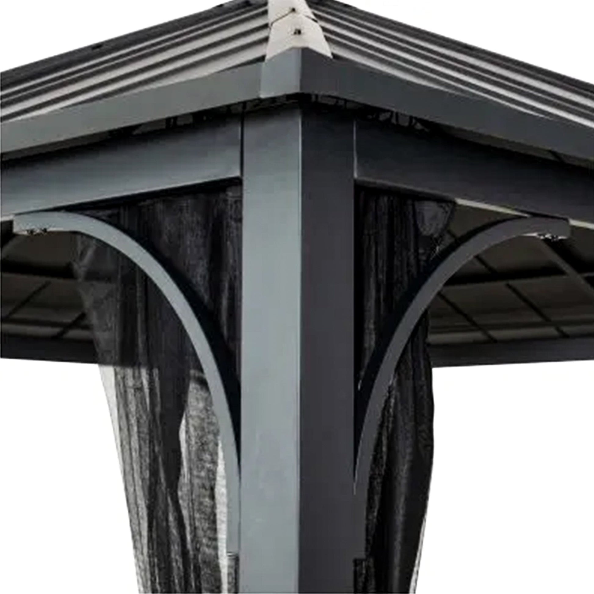 This gazebo ready-to-assemble outdoor structure creates the ideal outdoor backdrop for any season. The strong powder-coated galvanized steel roof shields you from the sun and adverse weather for maximum protection. Rust-proof, maintenance-free aluminum posts with metal constructions provide structural strength and stability, ensuring the unit will stay standing at all times. Set the tone by suspending a chandelier from the built-in ceiling hook for both functional illumination and high elegant style, upscaling any event. You'll be resting in your favorite new outdoor living place for years to come, thanks to simple, easy-to-follow construction instructions.