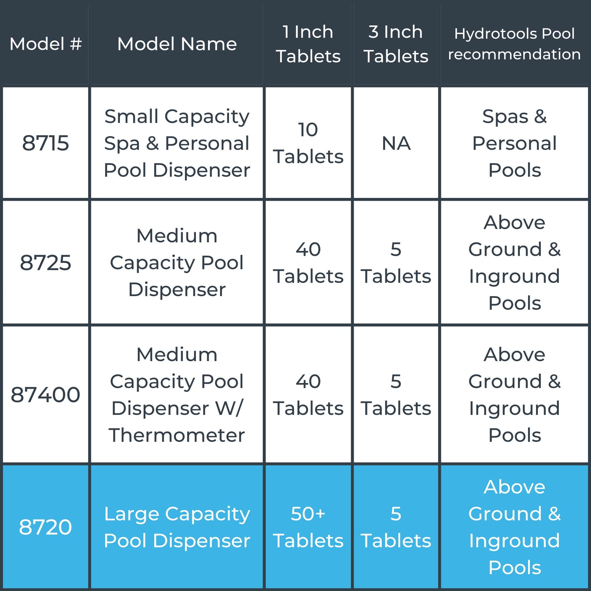 Chemical and chlorine maintenance can be a hassle and takes up much of the time you should spend enjoying your personal pool. Keep your chlorine level up effortlessly with this large capacity Hydro Tool swimming pool floating dispenser. The floating dispenser features a heavy-duty design that holds about 3 pounds of 1 or 3-inch chlorine discs.