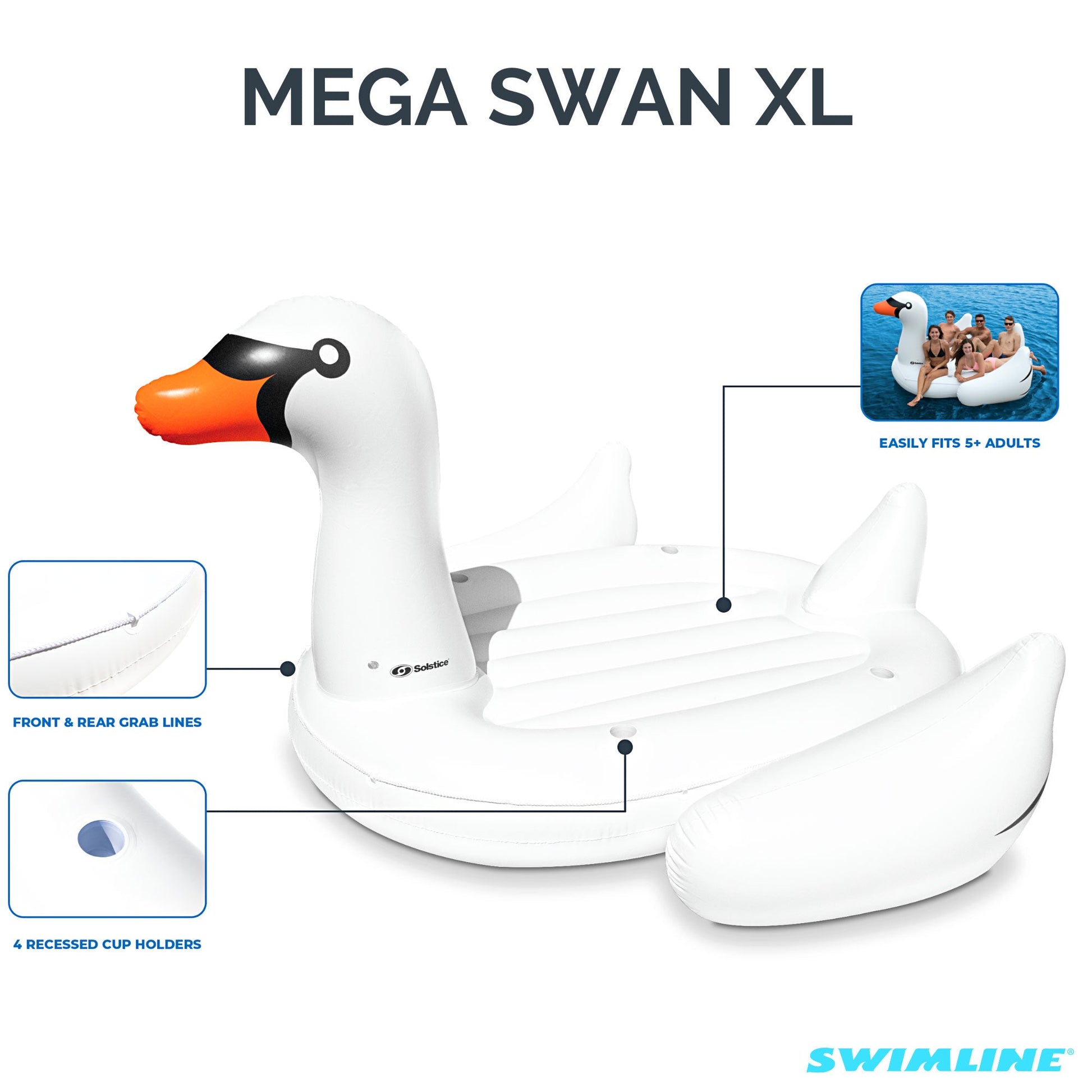 - Equipped with 2 built-in handles on each side of the swan to provide a safe ride for kids and adults of all ages