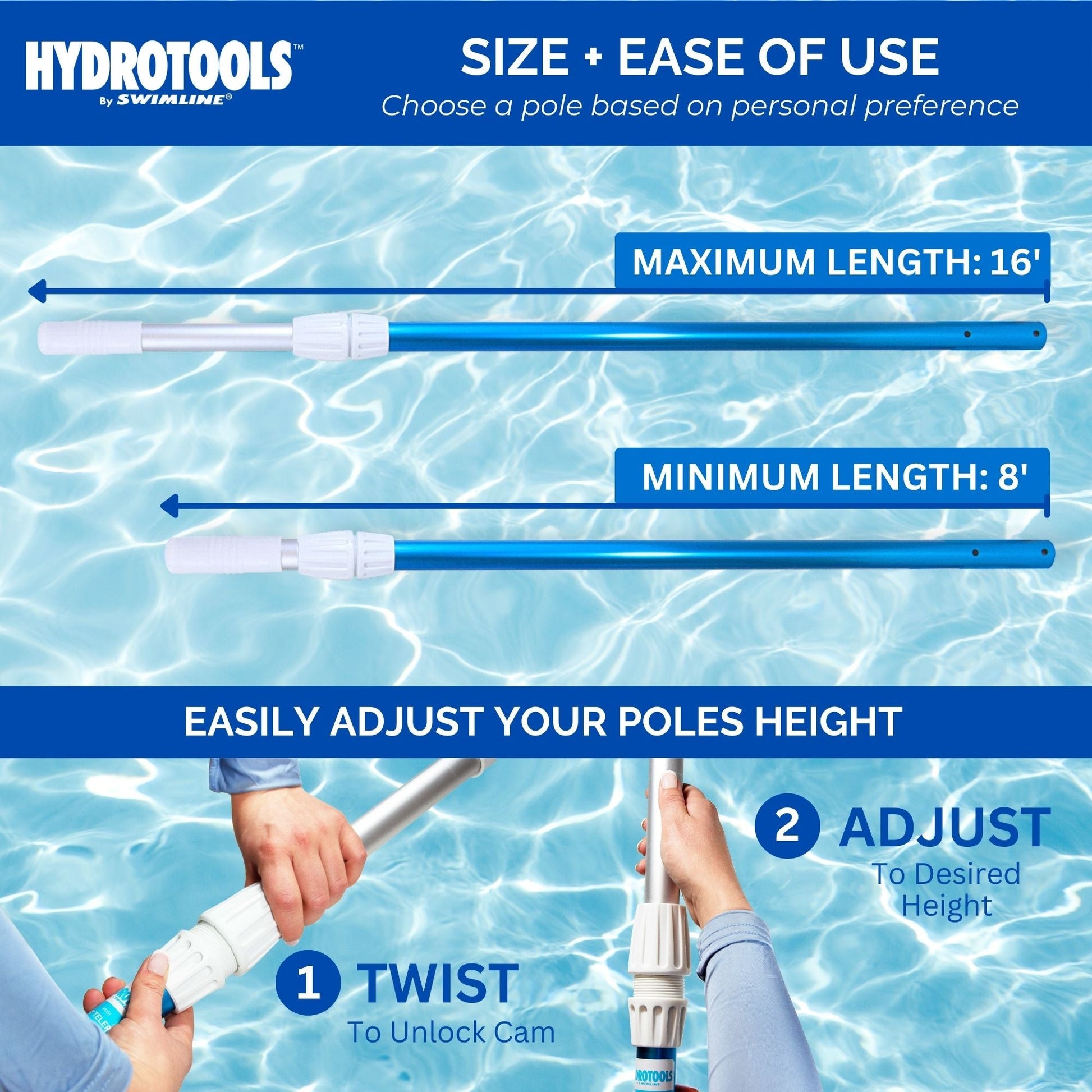 Enjoy a clean and pristine pool with clear, gorgeous water all summer long with the HydroTools 8356M Adjustable Extending 3 Piece Telescopic Pole for Pool from Swimline.