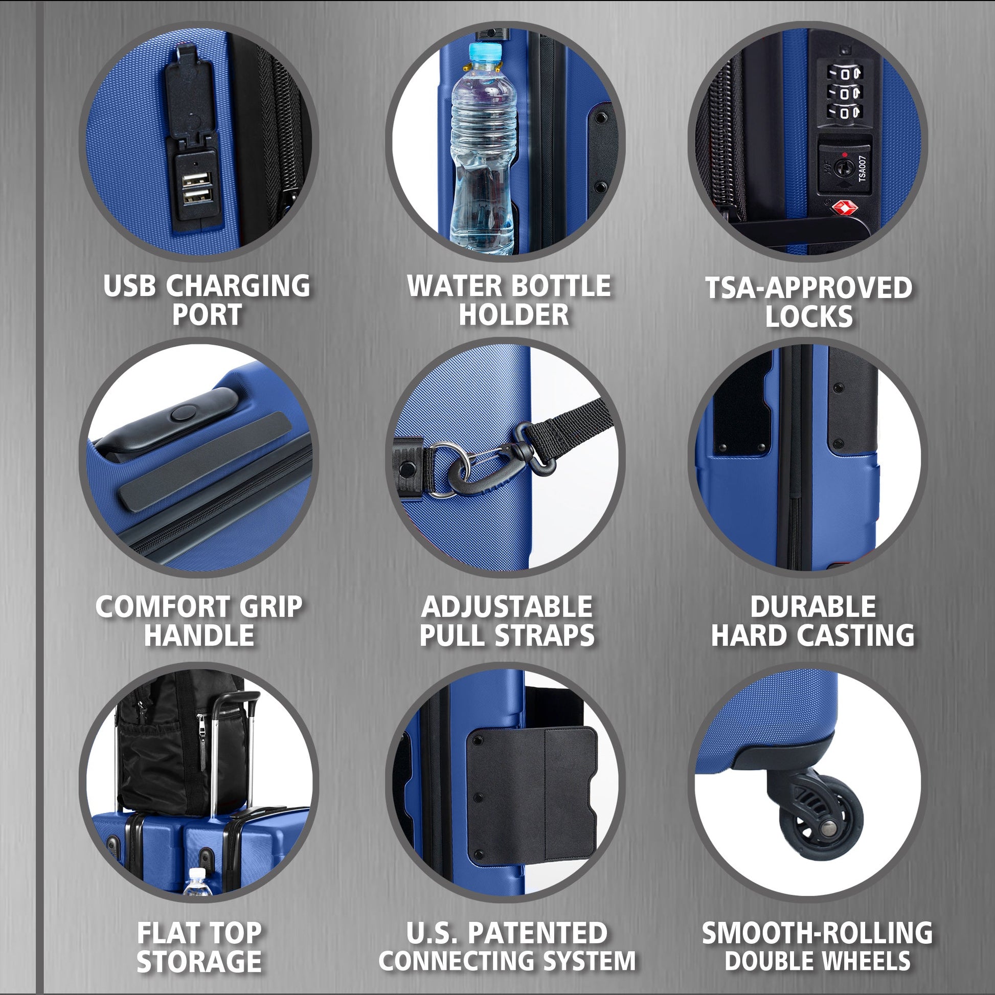 - TSA-approved locks safeguard against theft